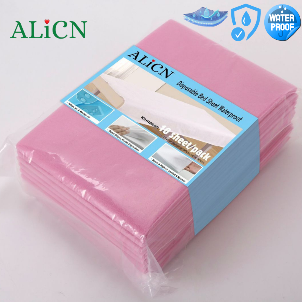 ALICN Disposable Bed Sheet Waterproof Pink 10 Lembar 180x80 | Perlak Sekali Pakai