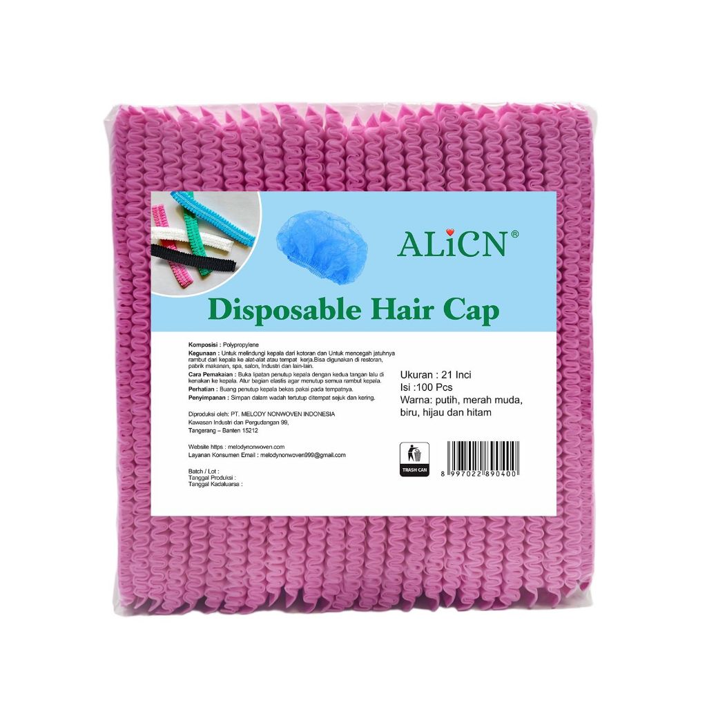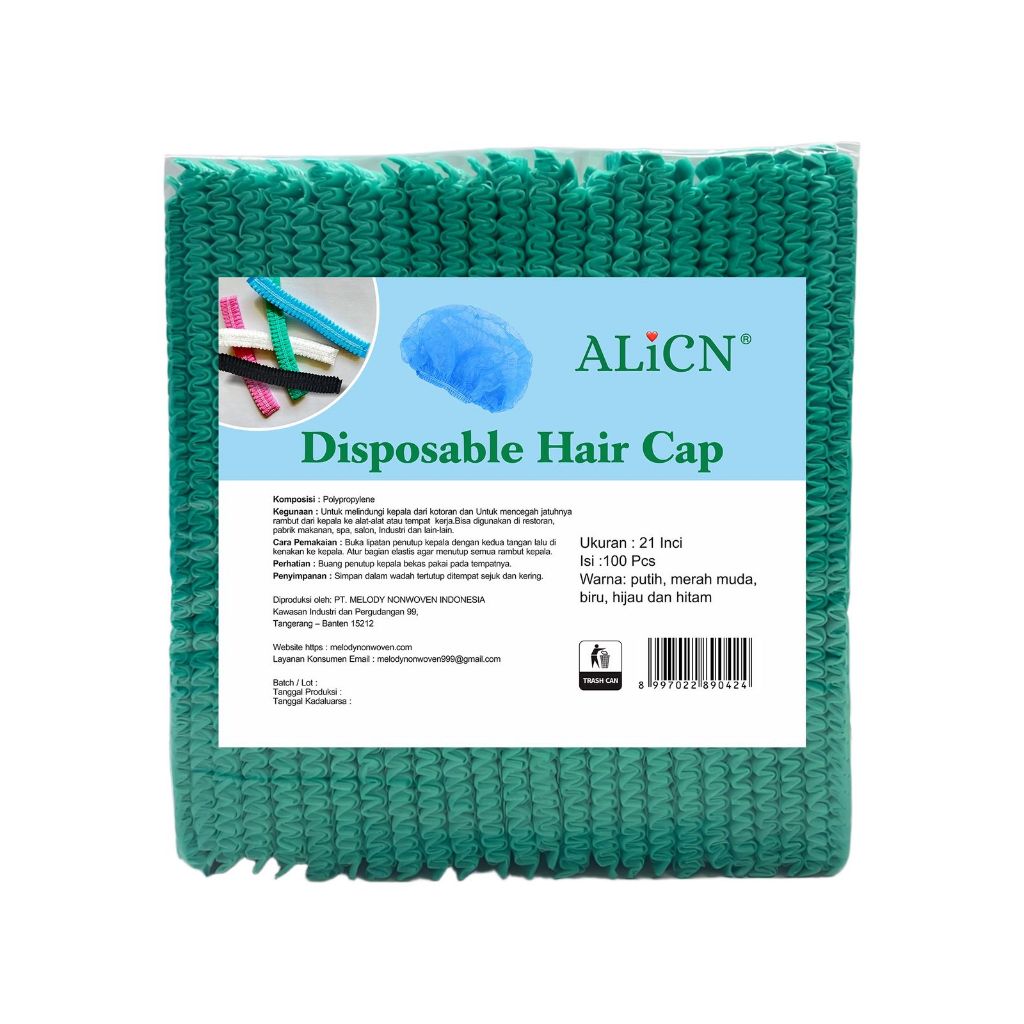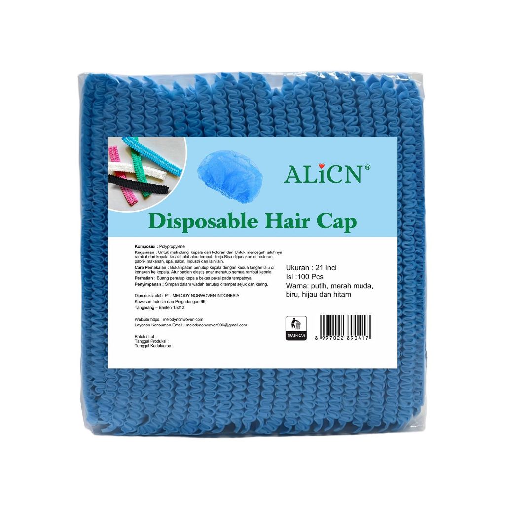 ALICN Hair Cap 100 Pcs Sekali Pakai – Penutup Rambut Non Woven Elastis untuk Salon, Restoran, Pabrik, Dapur