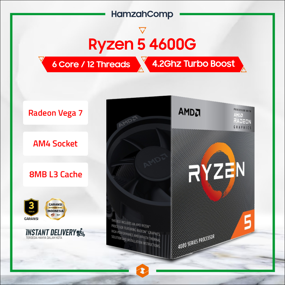 AMD Ryzen 5 4600G 3.7Ghz Up to 4.2Ghz 8MB Cache Box With Wraith Stealth Cooler