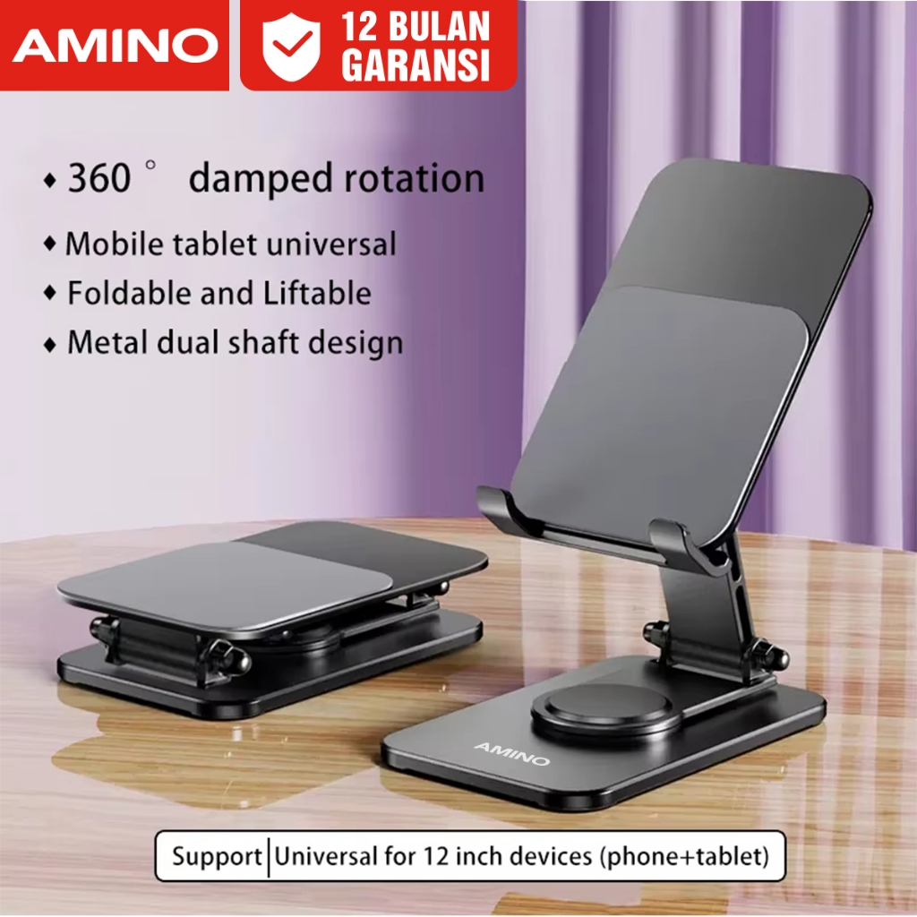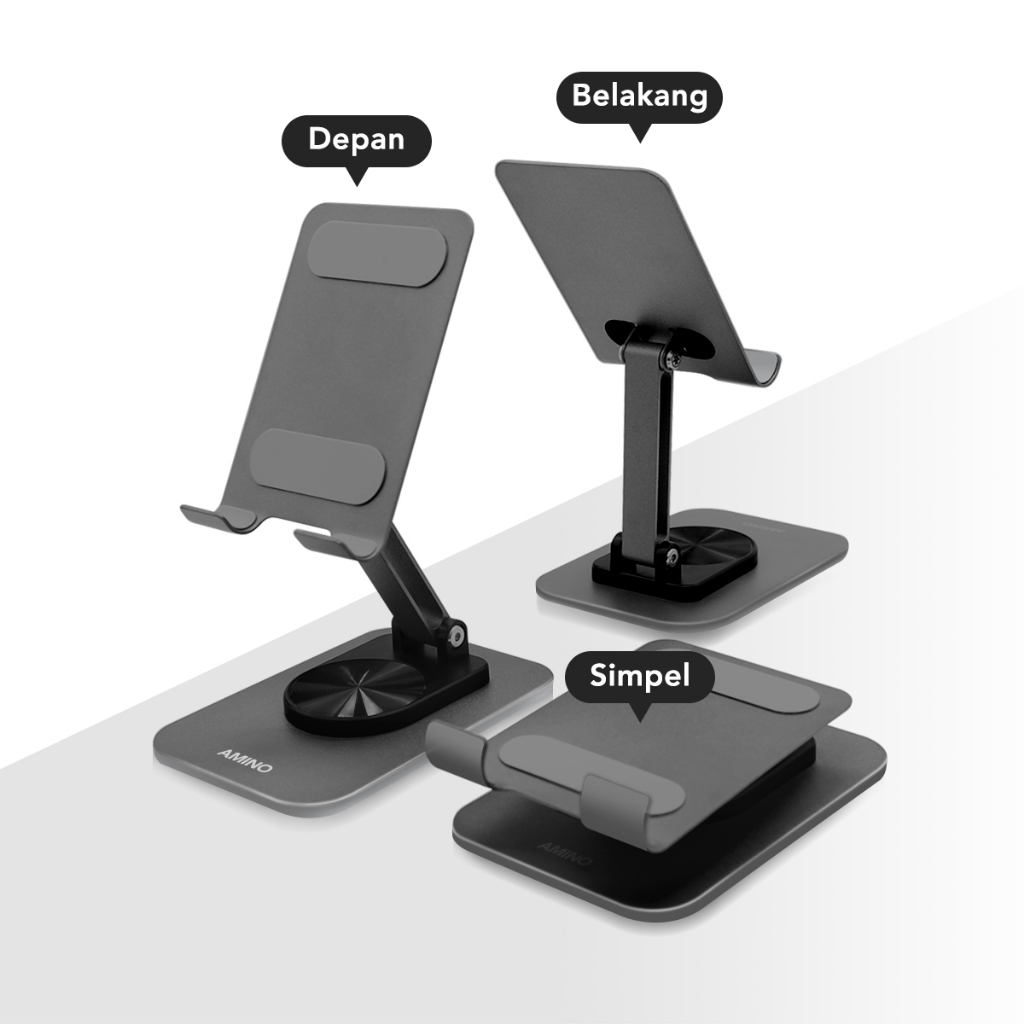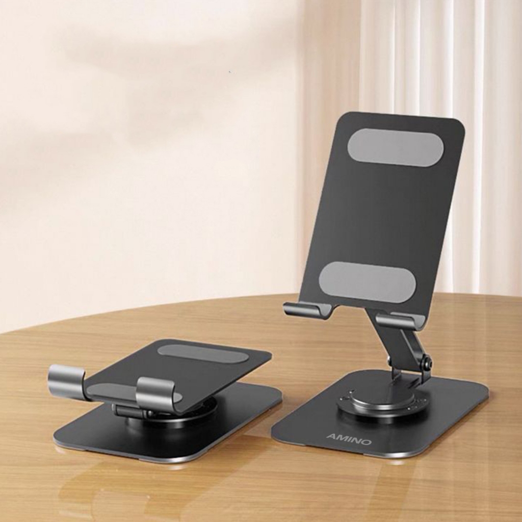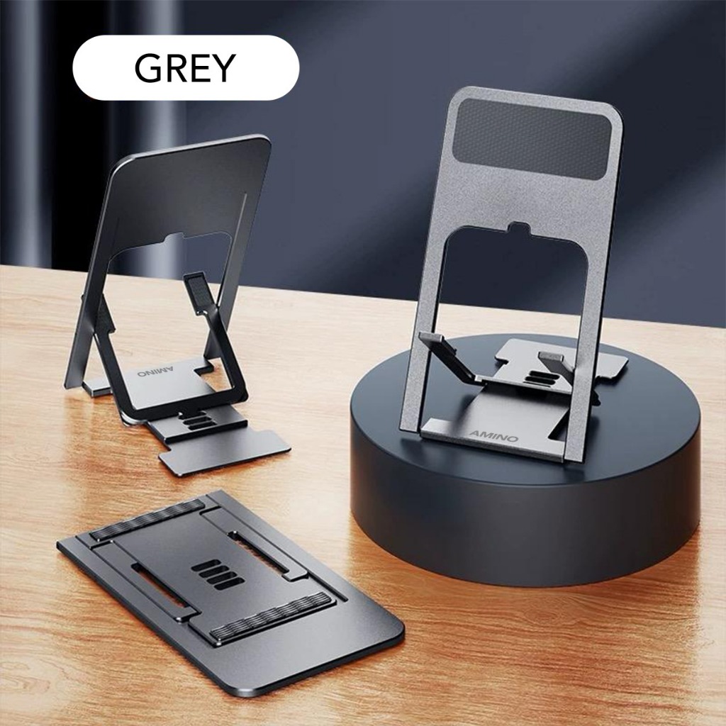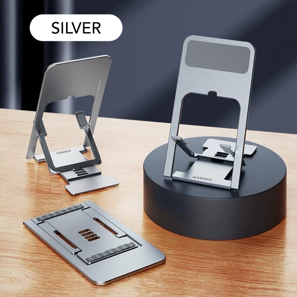 AMINO 360 Rotatable Foldable Phone Stand Holder Dudukan Handphone Pad Desktop Bracket Aluminium / Desktop Stand Phone Tablet Holder 360 Rotation Protection / Adjustable Height