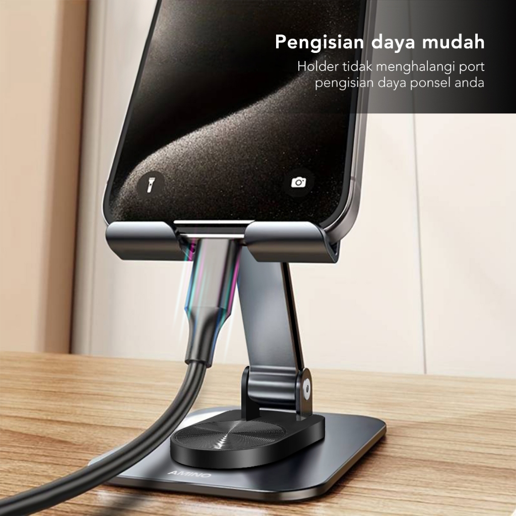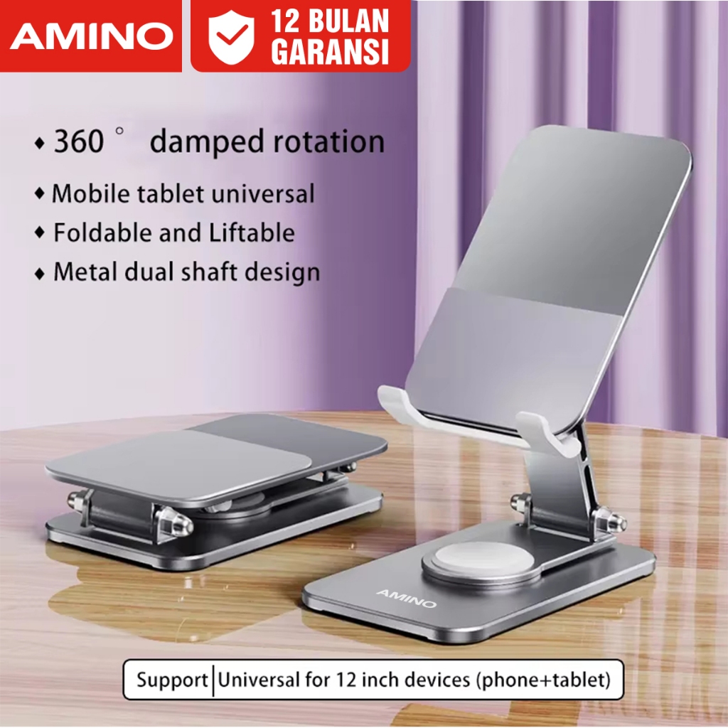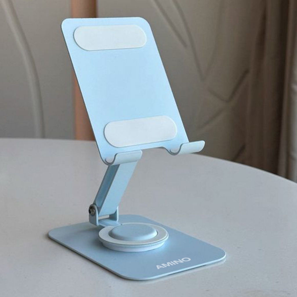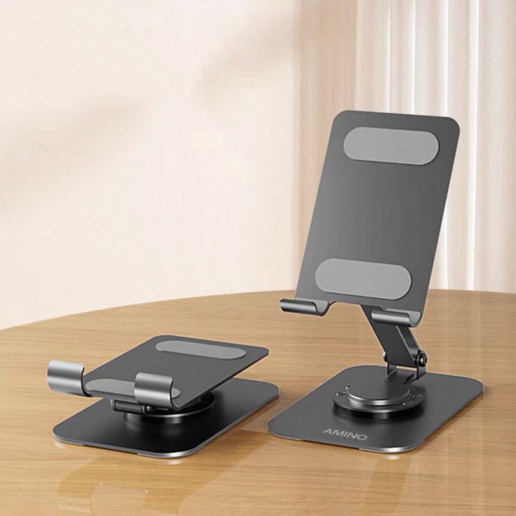 AMINO 360 Rotatable Foldable Phone Stand Holder Dudukan Handphone Pad Desktop Bracket Aluminium / Desktop Stand Phone Tablet Holder 360 Rotation Protection / Adjustable Height