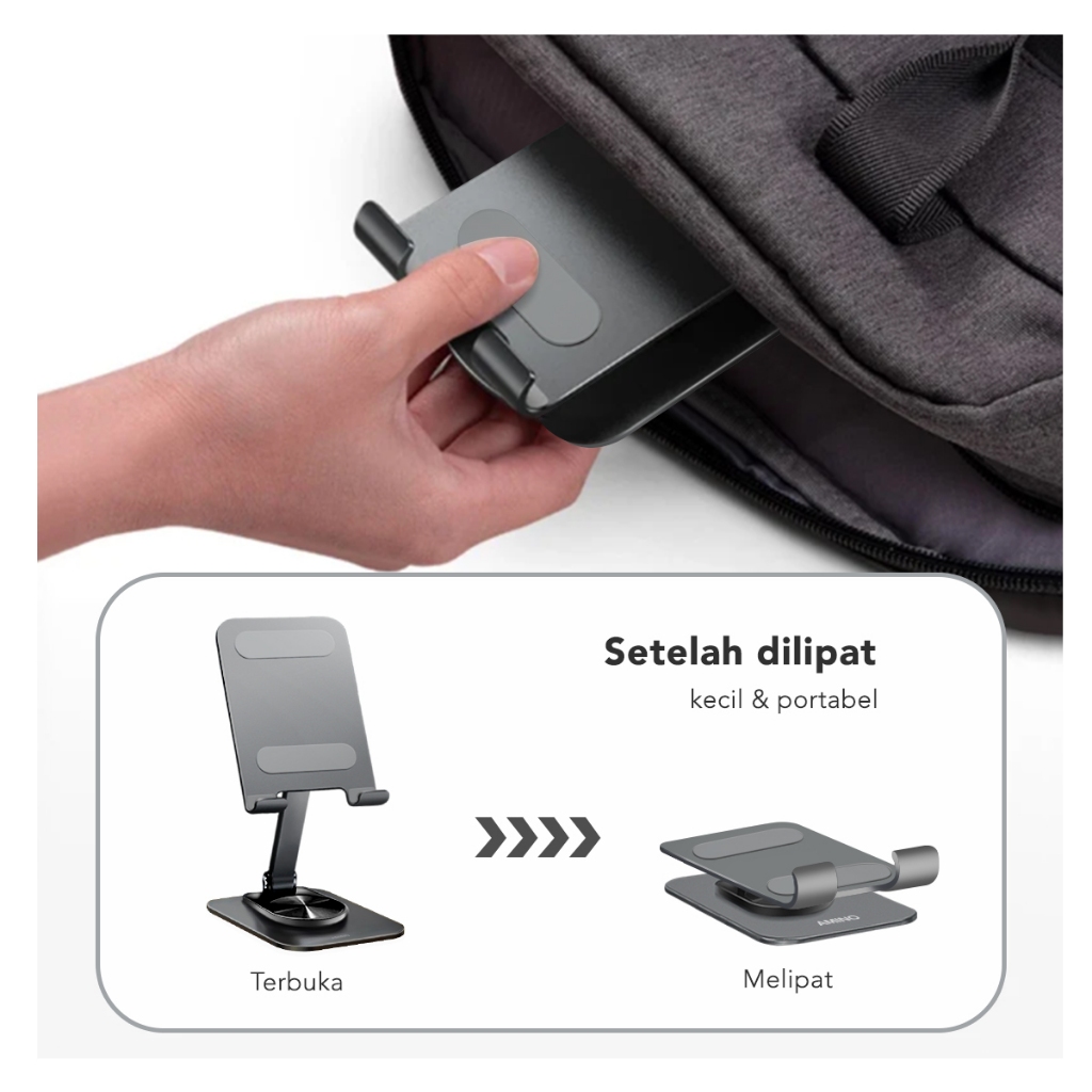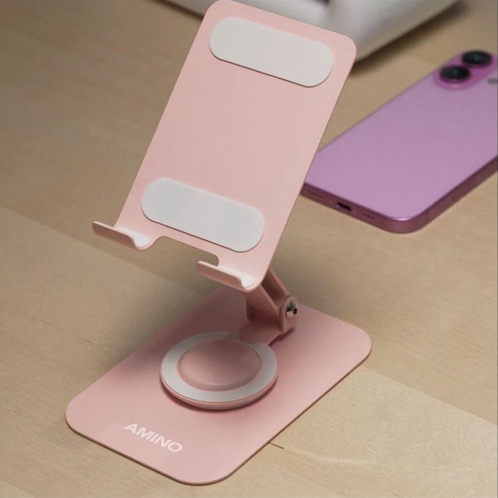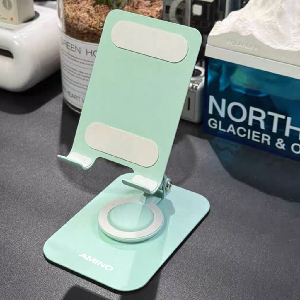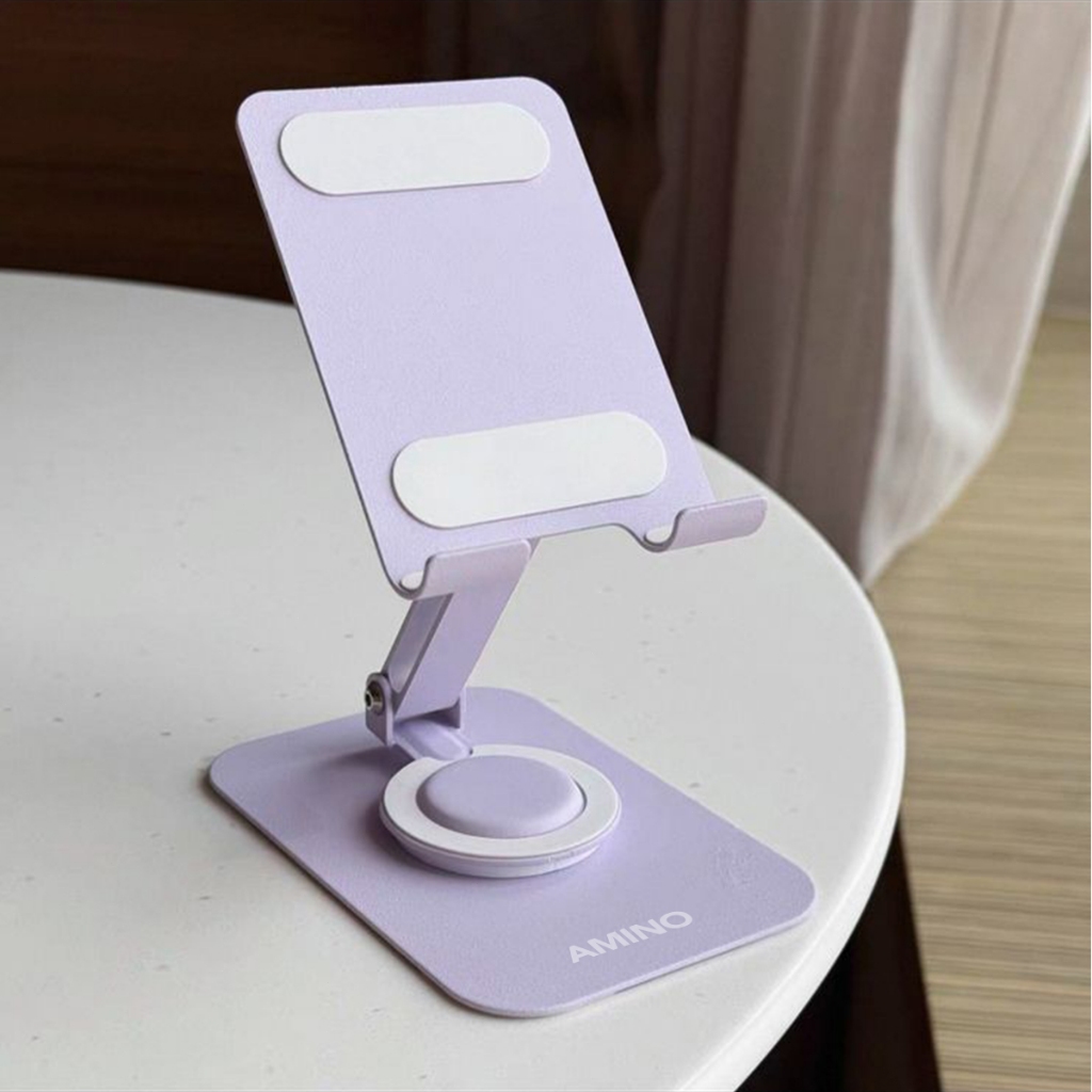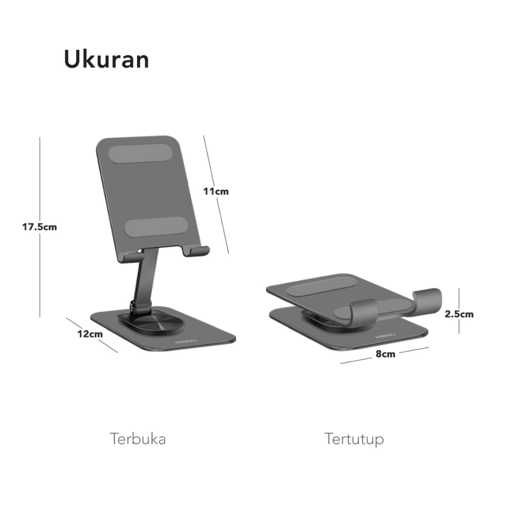 AMINO 360 Rotatable Foldable Phone Stand Holder Dudukan Handphone Pad Desktop Bracket Aluminium / Desktop Stand Phone Tablet Holder 360 Rotation Protection / Adjustable Height