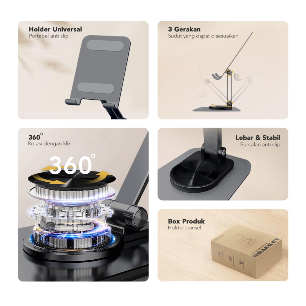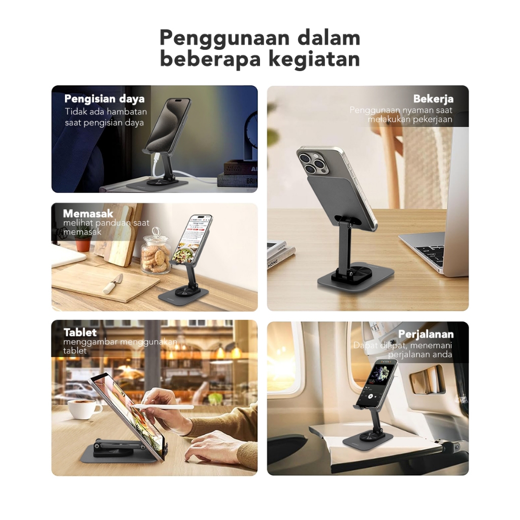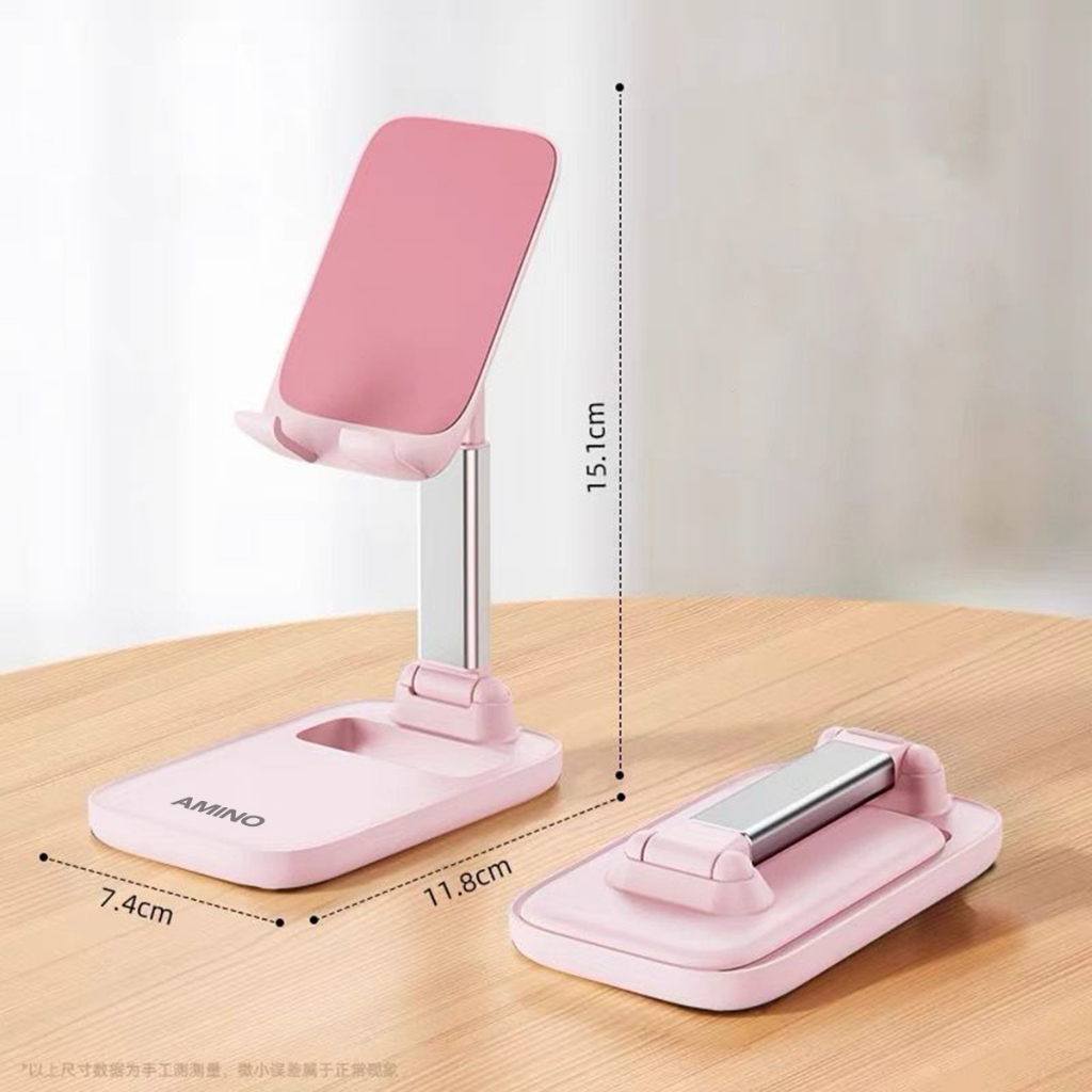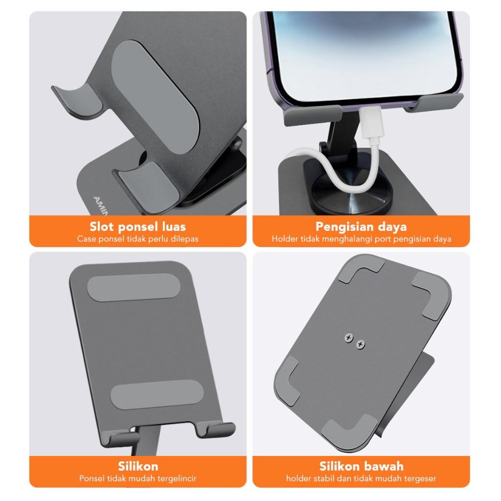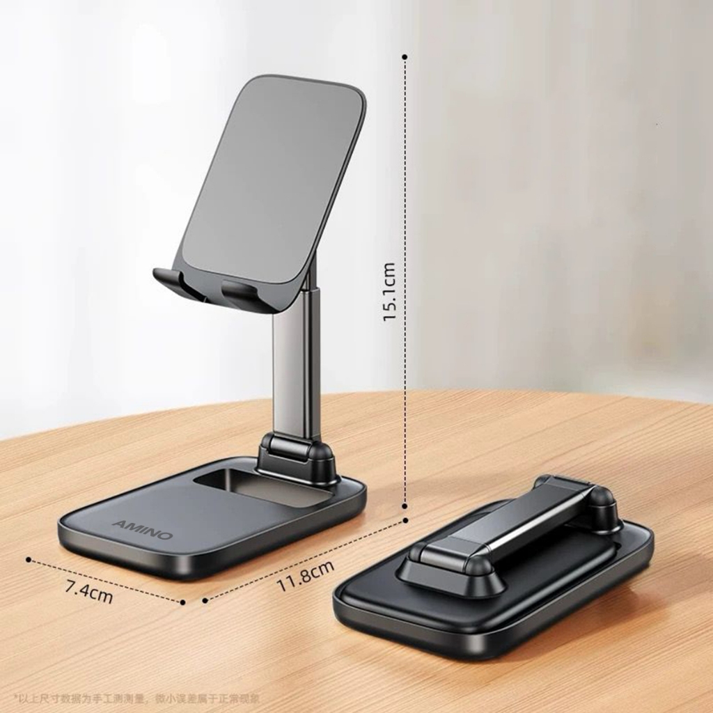 AMINO 360 Rotatable Foldable Phone Stand Holder Dudukan Handphone Pad Desktop Bracket Aluminium / Desktop Stand Phone Tablet Holder 360 Rotation Protection / Adjustable Height