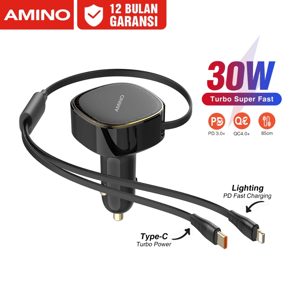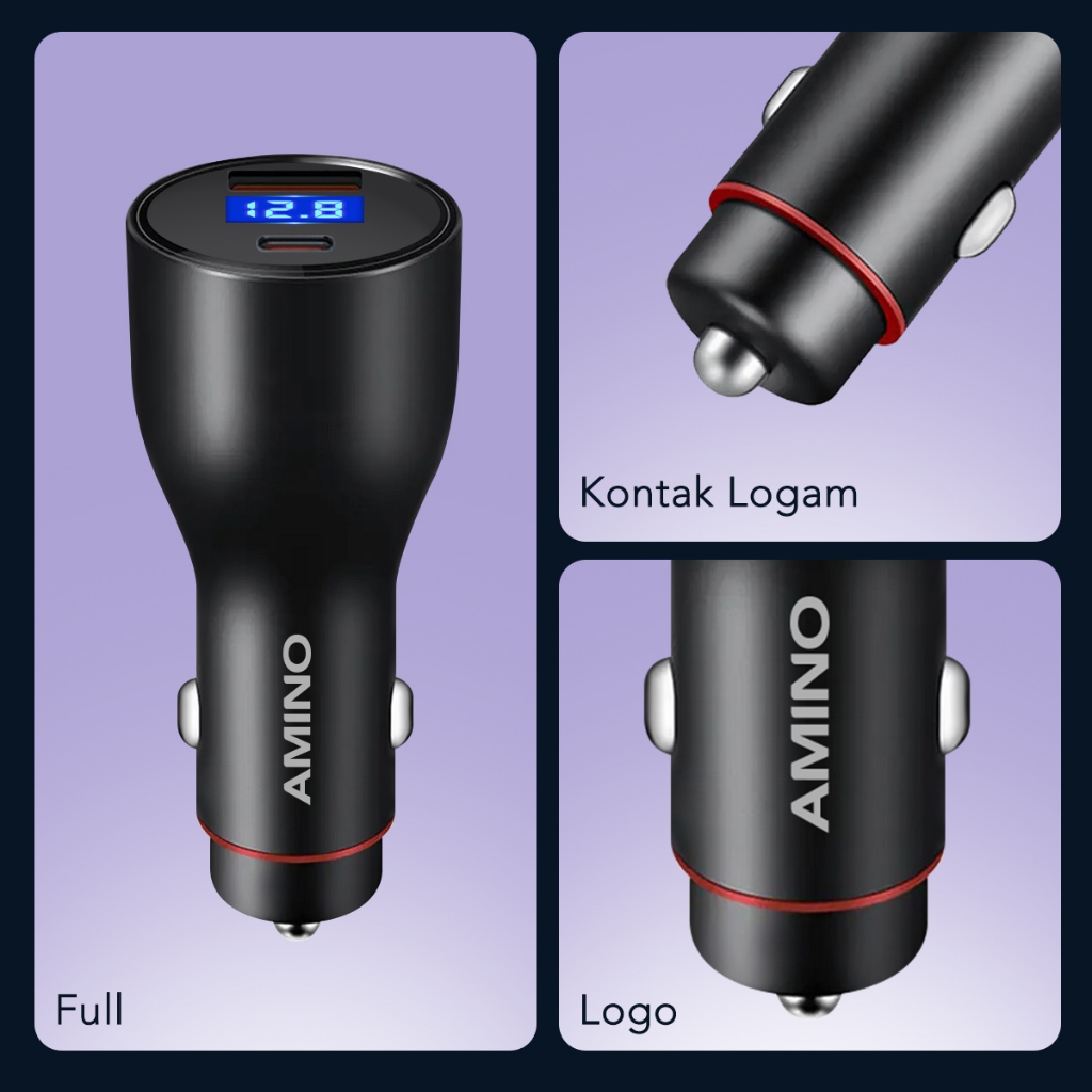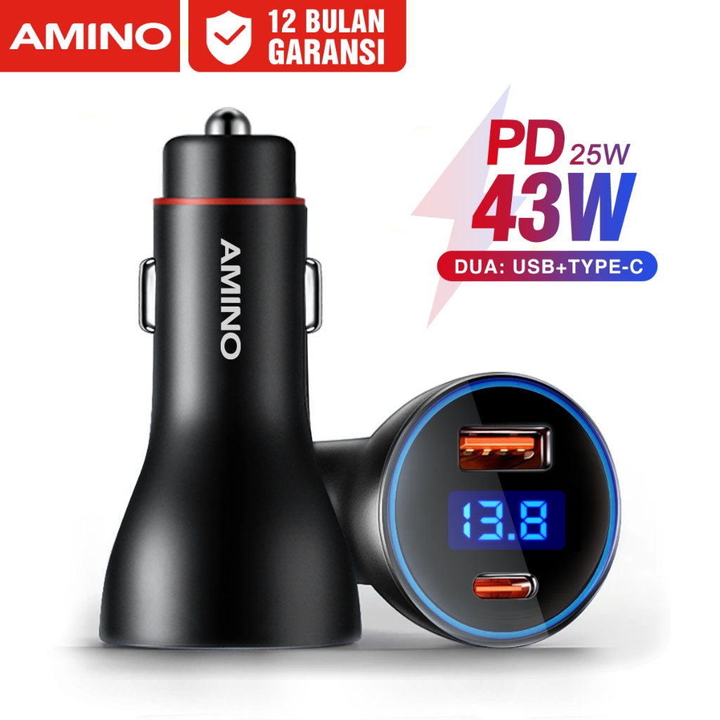 AMINO Car Charger 43W Type-C PD+USB Mobil Quick Charge 3.0 / PD3.0 / 2 Ports LED Screen For xiaomi samsung huawei Super Fast Charger Oppo SuperVOOC / Tampilan Digital Mobil Charger