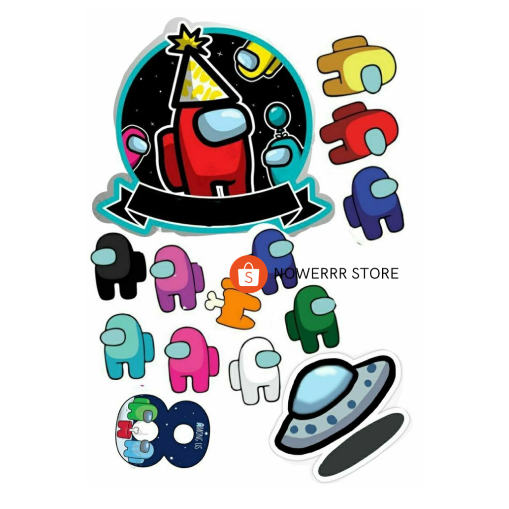 AMONG US/ Topper Tema AMONG US Custom Nama/Hiasan Cake ULTAH Among Us