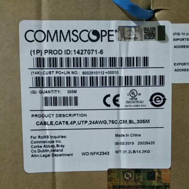 AMP Cat6 UTP Cable 305Meter Original USA Kabel Commscope 1 roll = 305m