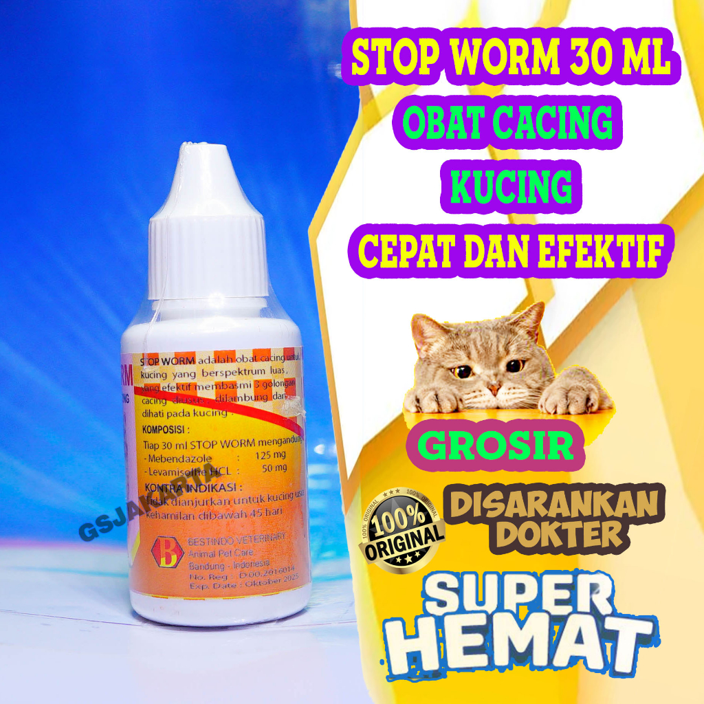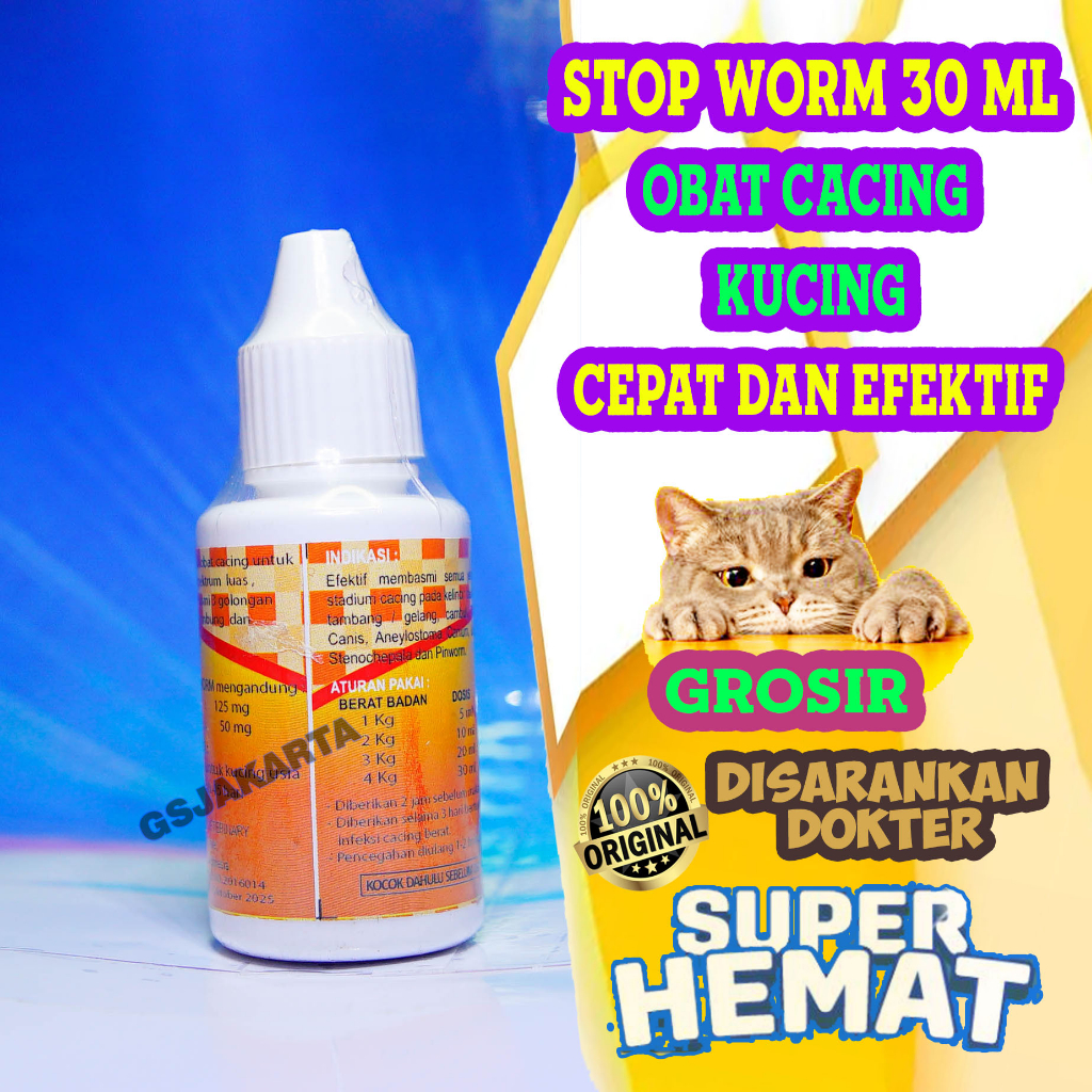 AMPUH OBAT CACING KUCING SAKIT CACINGAN PARASIT STOP WORM GARUDA SALE
