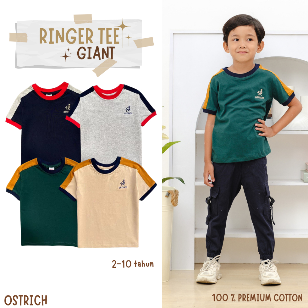 ANAKMAMIBRANDED.ID KAOS ANAK PENDEK RINGER GIANT Kaos anak laki laki 2-10 Tahun Kaos anak cowo kaos anak tangan pendek kaos anak OSTRICH OSKSL013