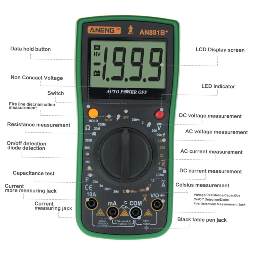 ANENG Digital Multimeter Portable NCV Non Contact Tester Listrik - AN881B+ Original 99 Engine