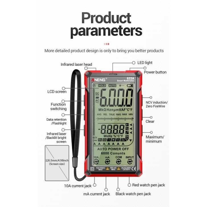 ANENG Smart Digital Multimeter Tester Infrared Laser - 622A