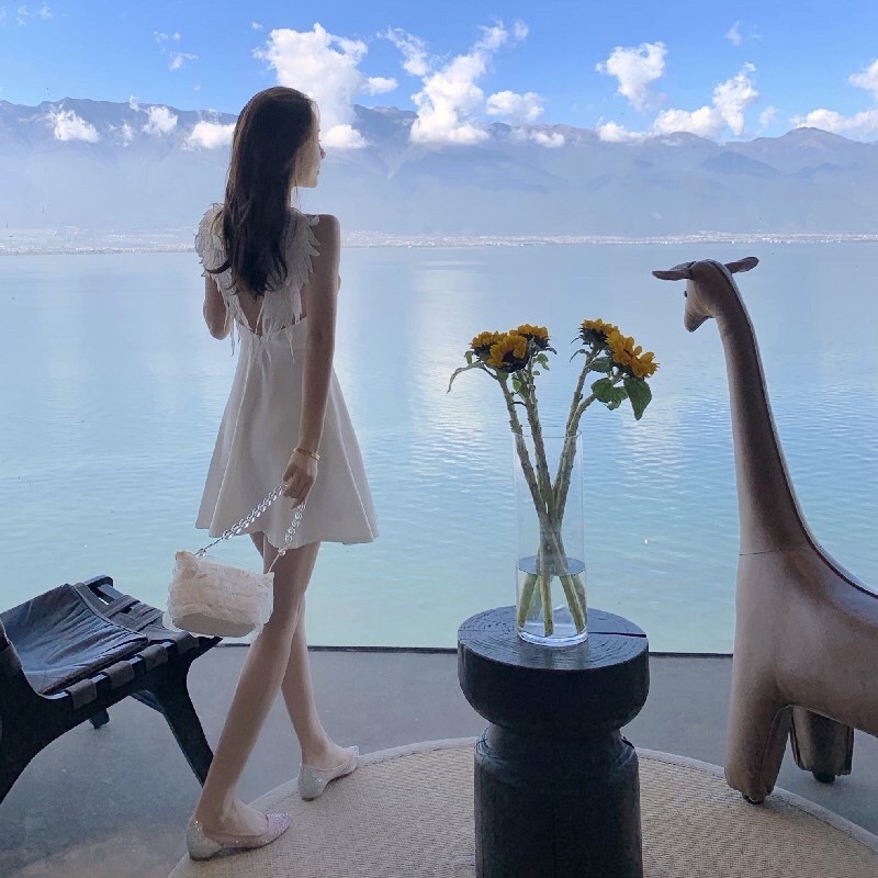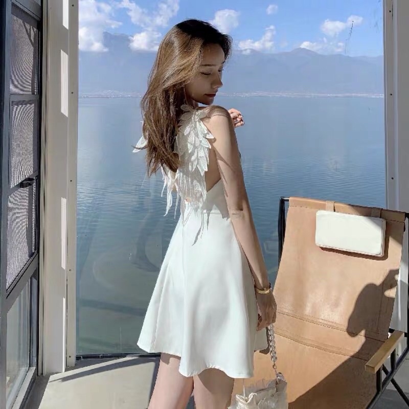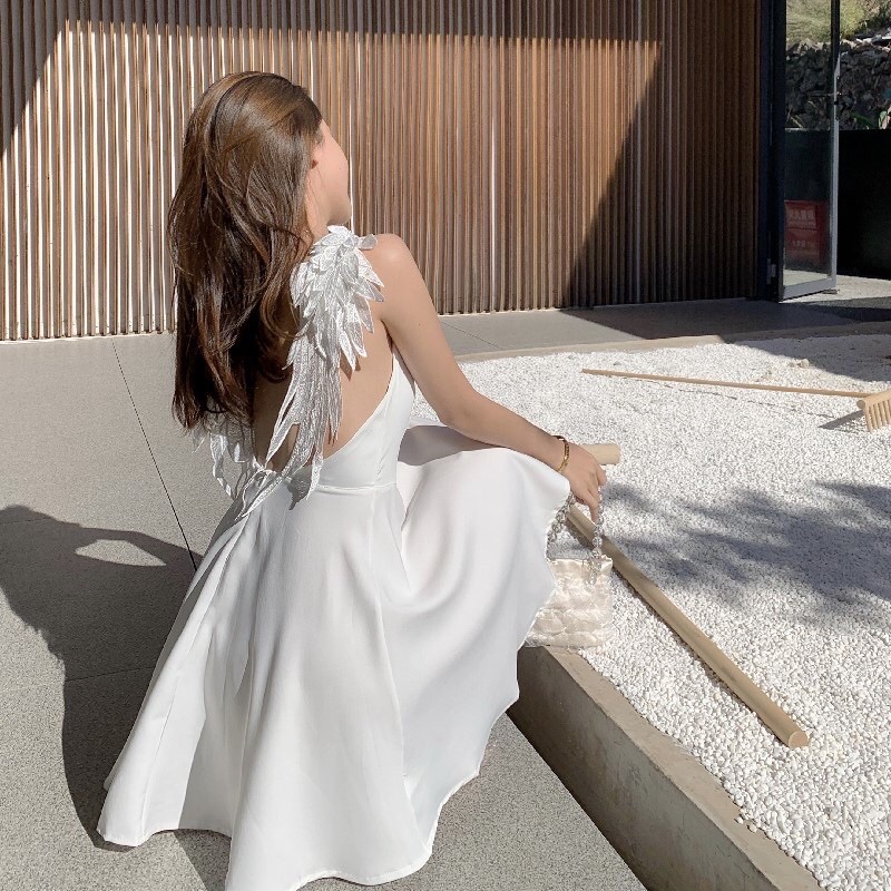 ANGELA DRESS / WHITE ANGEL DRESS WANITA CASUAL PUTIH BIRTHDAY DRESS PUTIH CEWEK DRESS BACKLESS PUTIH WANITA DRESS PREWED WANITA DRESS PREWEDDING CEWEK DRESS SAYAP PUTIH WANITA