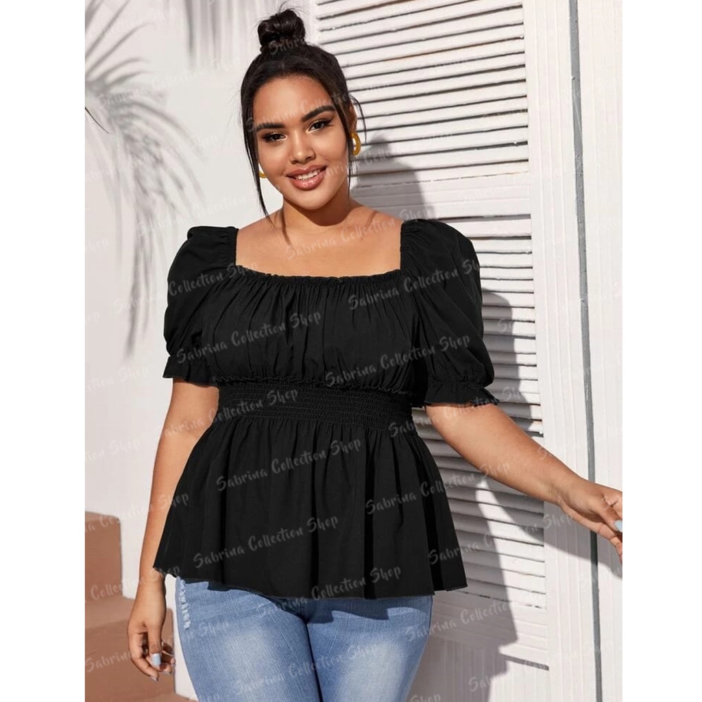 ANGELIE TOP BLOUSE BAJU SABRINA WANITA BIG SIZE RAYON BAJU SABRINA KOREAN STYLE READY L-XL-2L-3L-4L