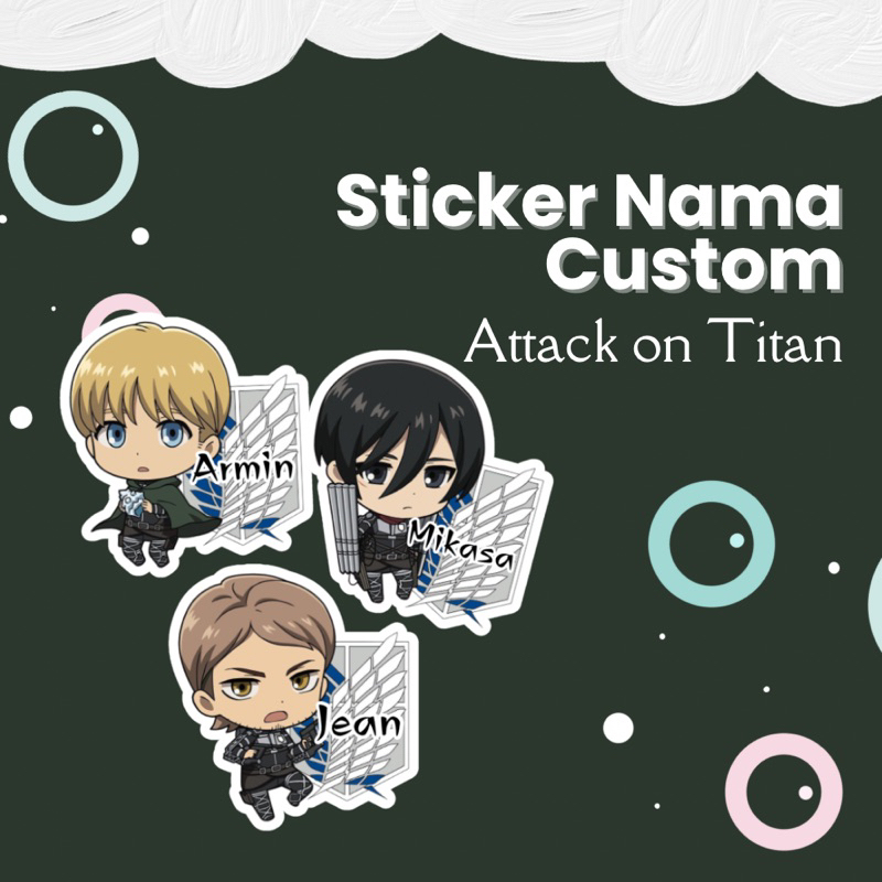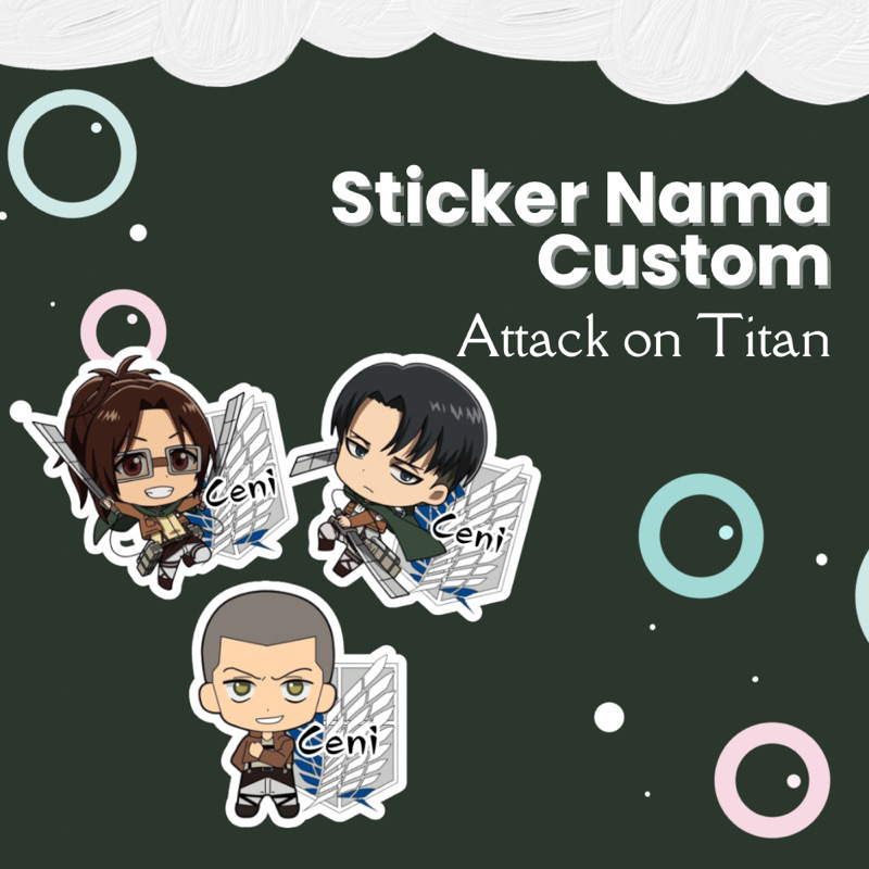 ANIME ATTACK ON TITAN Sticker nama custom Waterproof