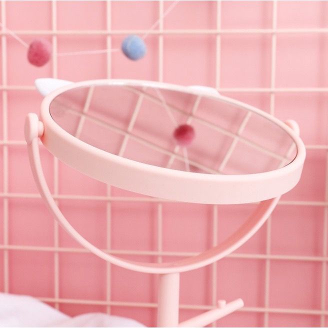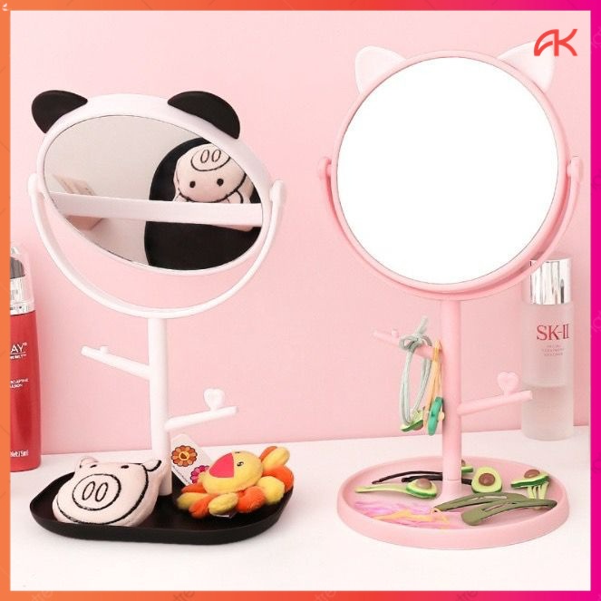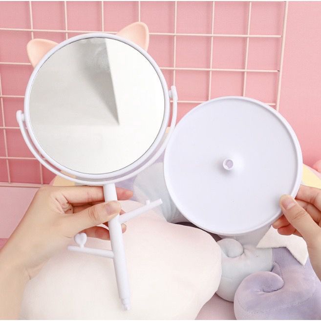ANK Cermin Motif Telinga Kucing Panda / Kaca Make Up Bulat / Standing Mirror Make Up