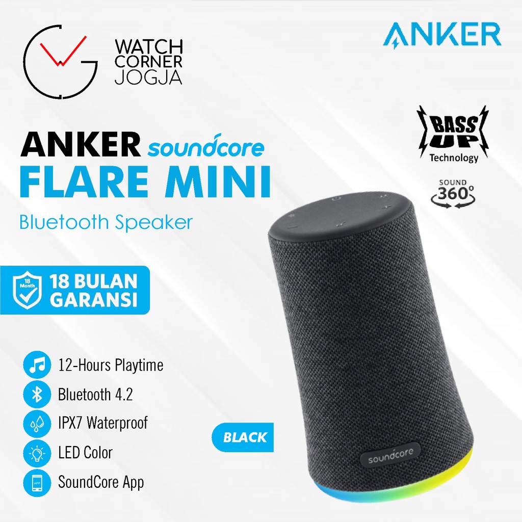 ANKER SoundCore Flare Mini Portable Bluetooth Speaker IPX7 ORIGINAL A3167
