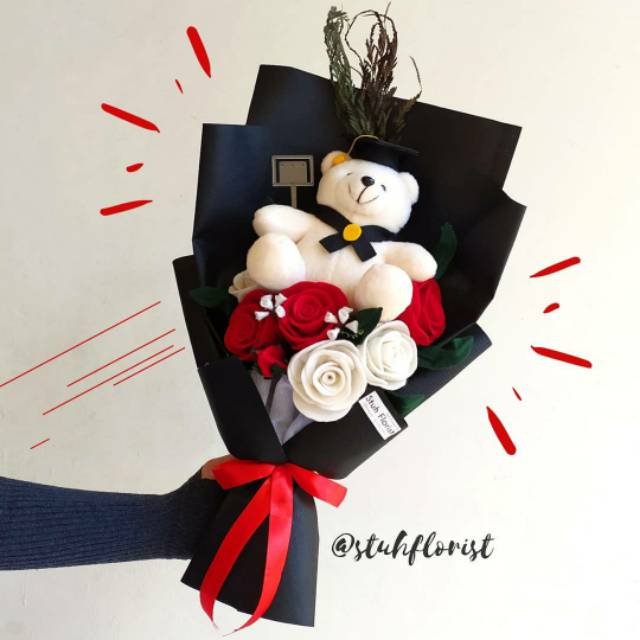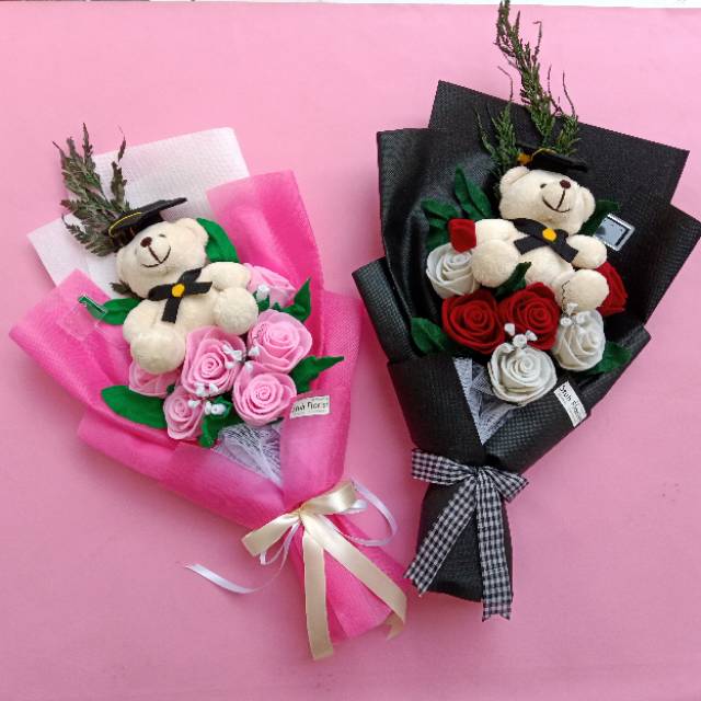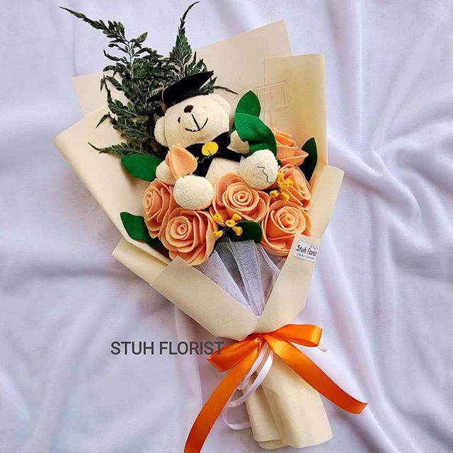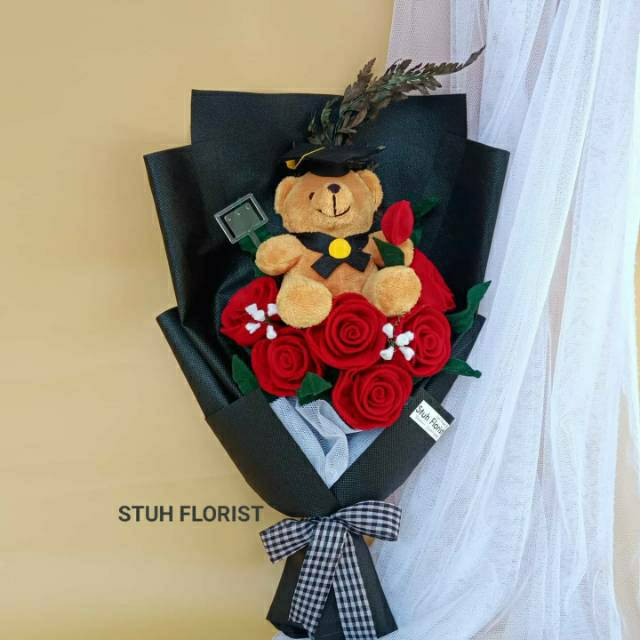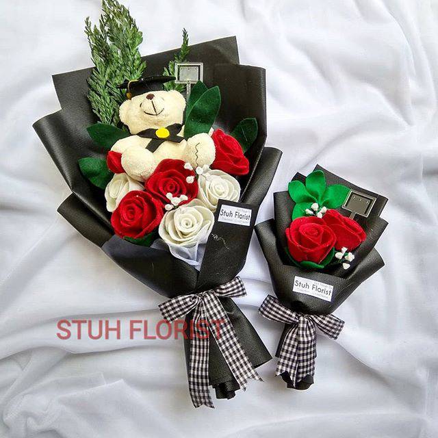 ANNA BOUQUET Bunga Mawar Merah Flanel Felt Flowers Bouquet Hadiah Wisuda Buket Wisuda