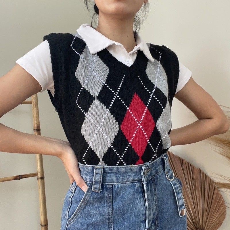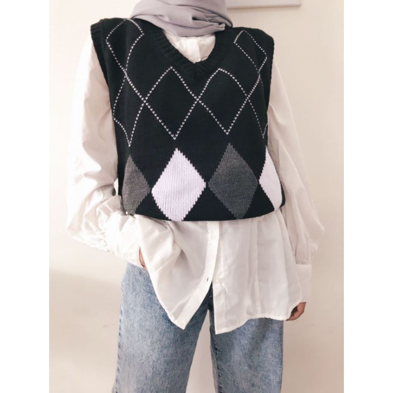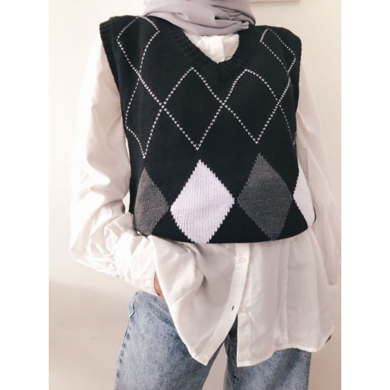 ANNA VEST / VEST KNIT PATTERNS KOREA / VEST AESTHETIC / KOREAN SCHOOL VEST / ROMPI MURAH WANITA PRIA