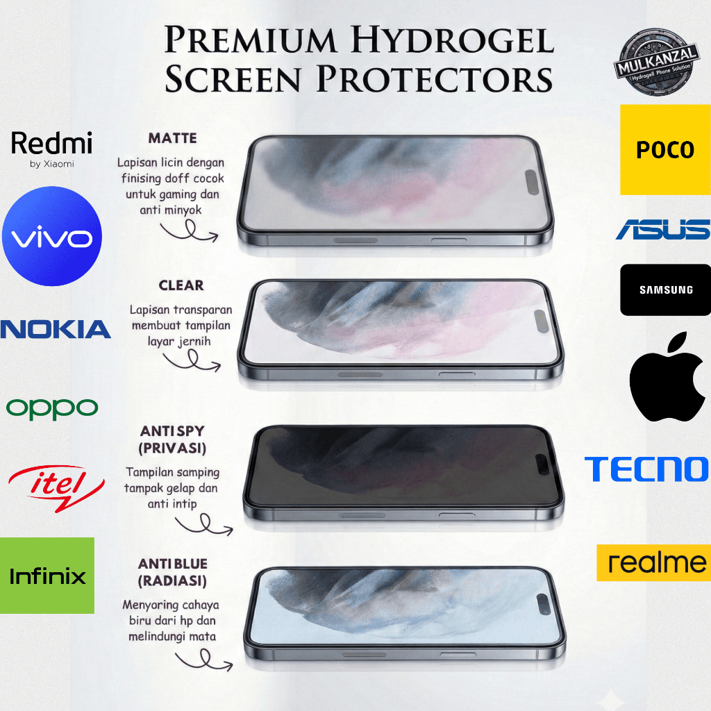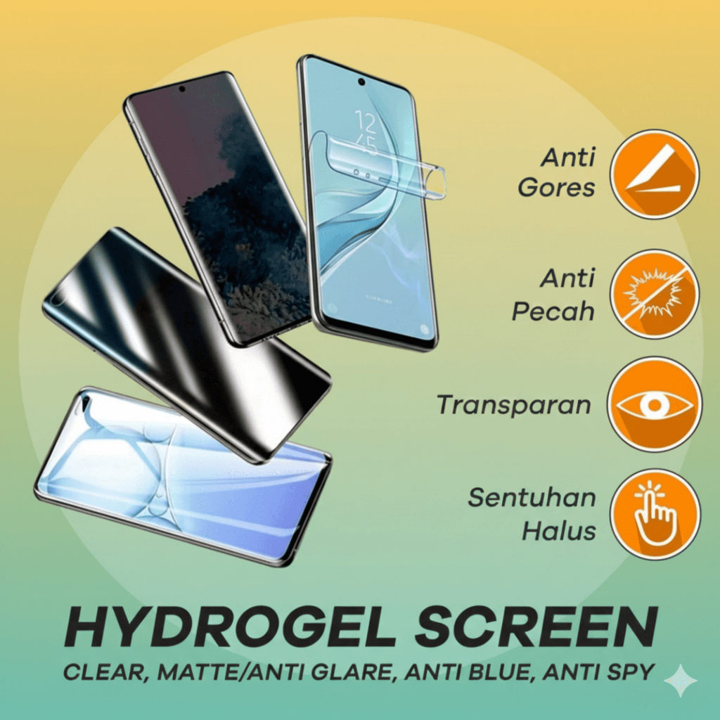 Promo TG Anti Gores Hydrogel Reques Type HP : Samsung, Oppo, Vivo, Iphone, Infinix, Xiaomi, Redmi, Poco, Semua Type HP