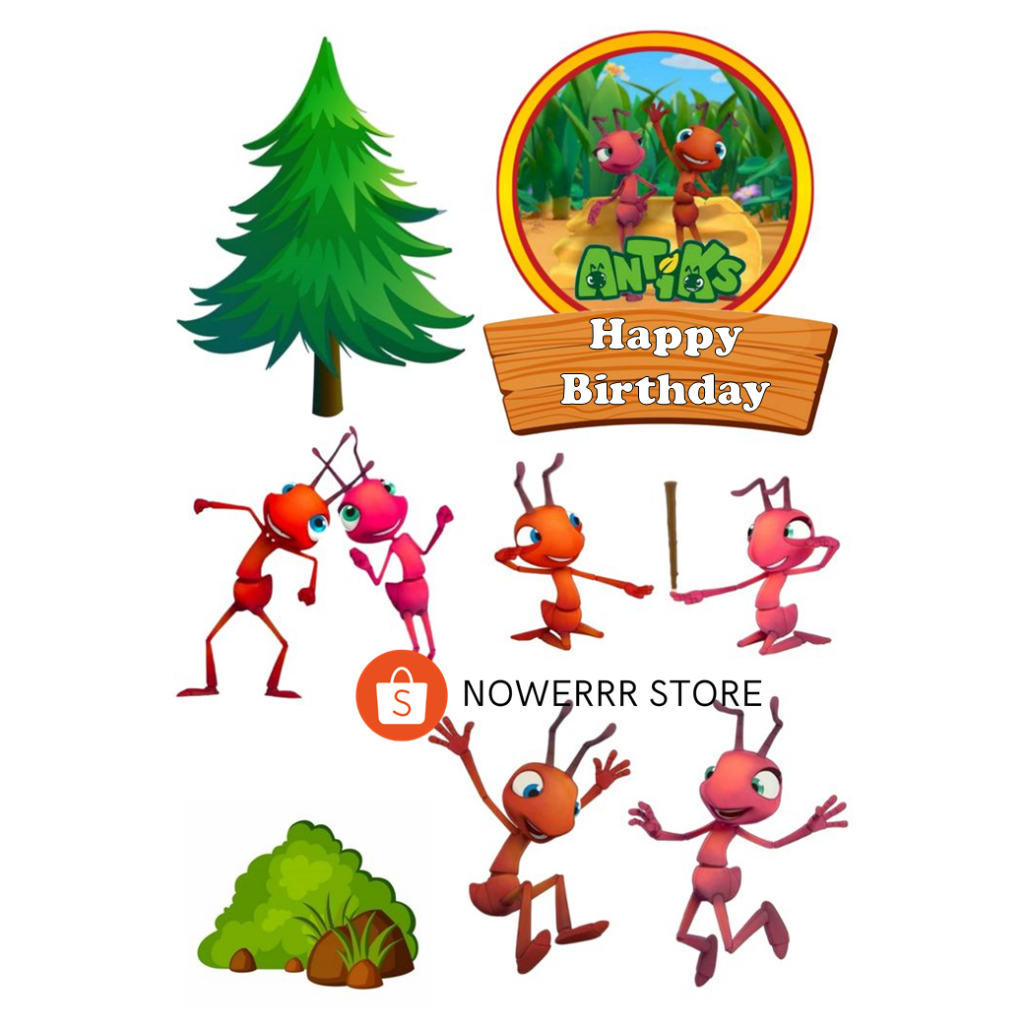 ANTIKS/ Topper Cake Antiks Semut Custom Nama/Hiasan Kue Ultah SEMUT KARTUN MURAH