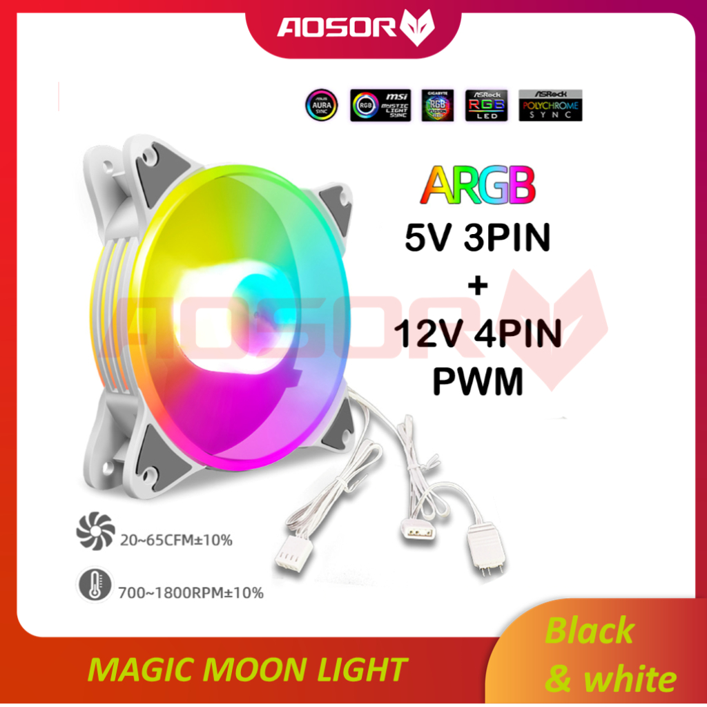 AOSOR FAN CASING MAGIC MOON LIGHT SYNC ARGB PWM BLACK & WHITE