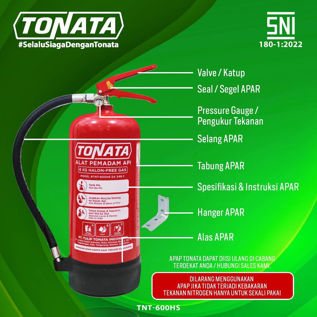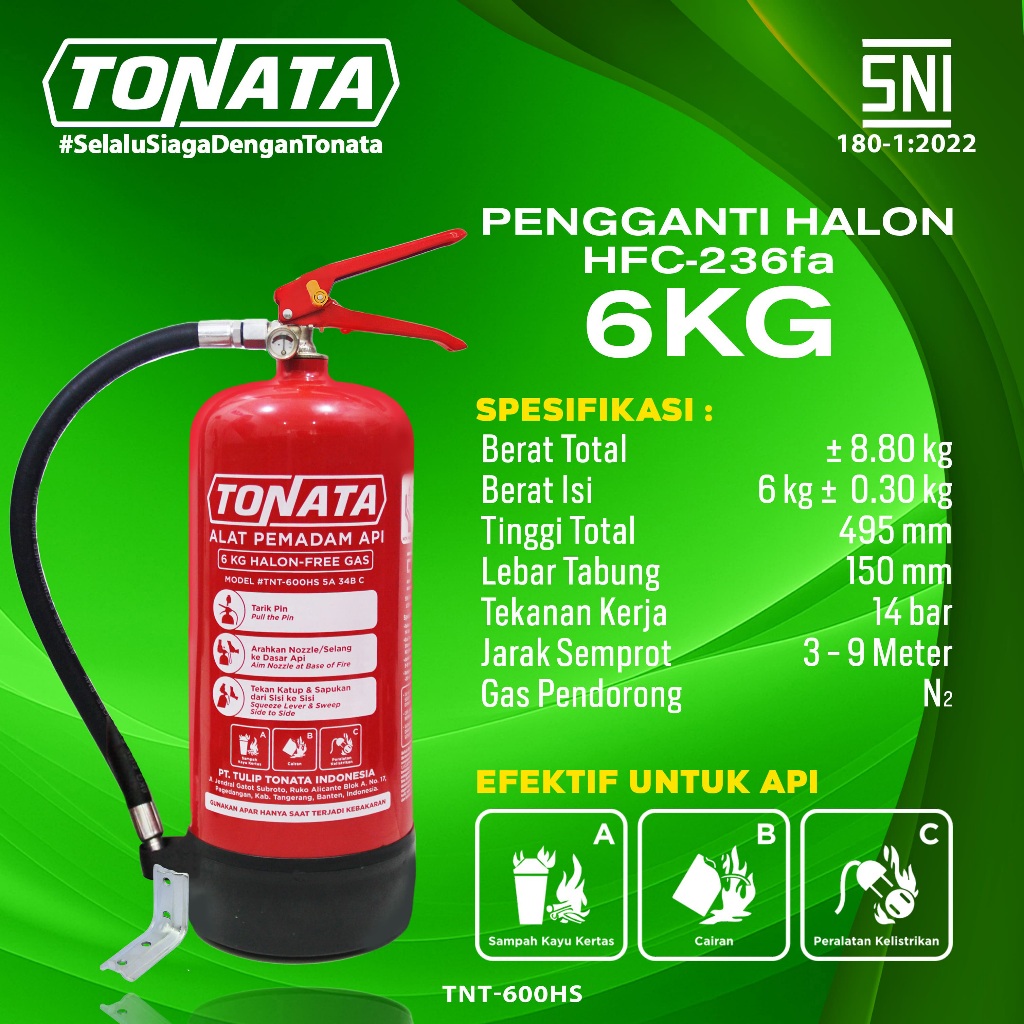 APAR 6 kg Tonata Clean Agent Eco Liquid Gas / Set Komplit