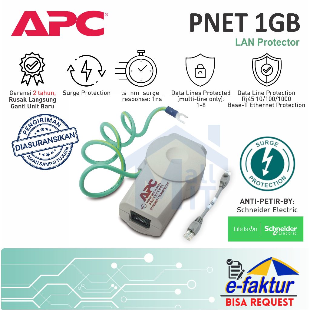 MALLIT APC Protector NET PNET 1GB Surge Protector ANTI PETIR LAN Jaringan Internet