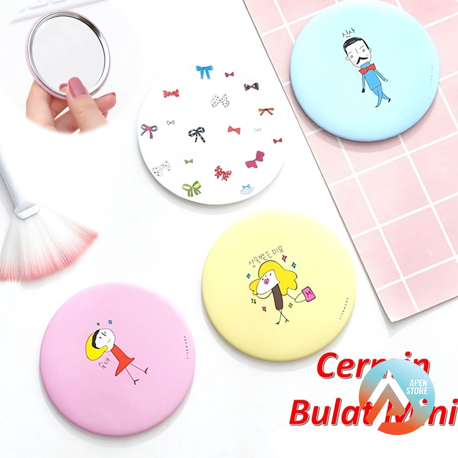 APEN Cermin Bulat Karakter Kaca Make Up Mini Travelling Motif Lucu Travel Size Barang Unik