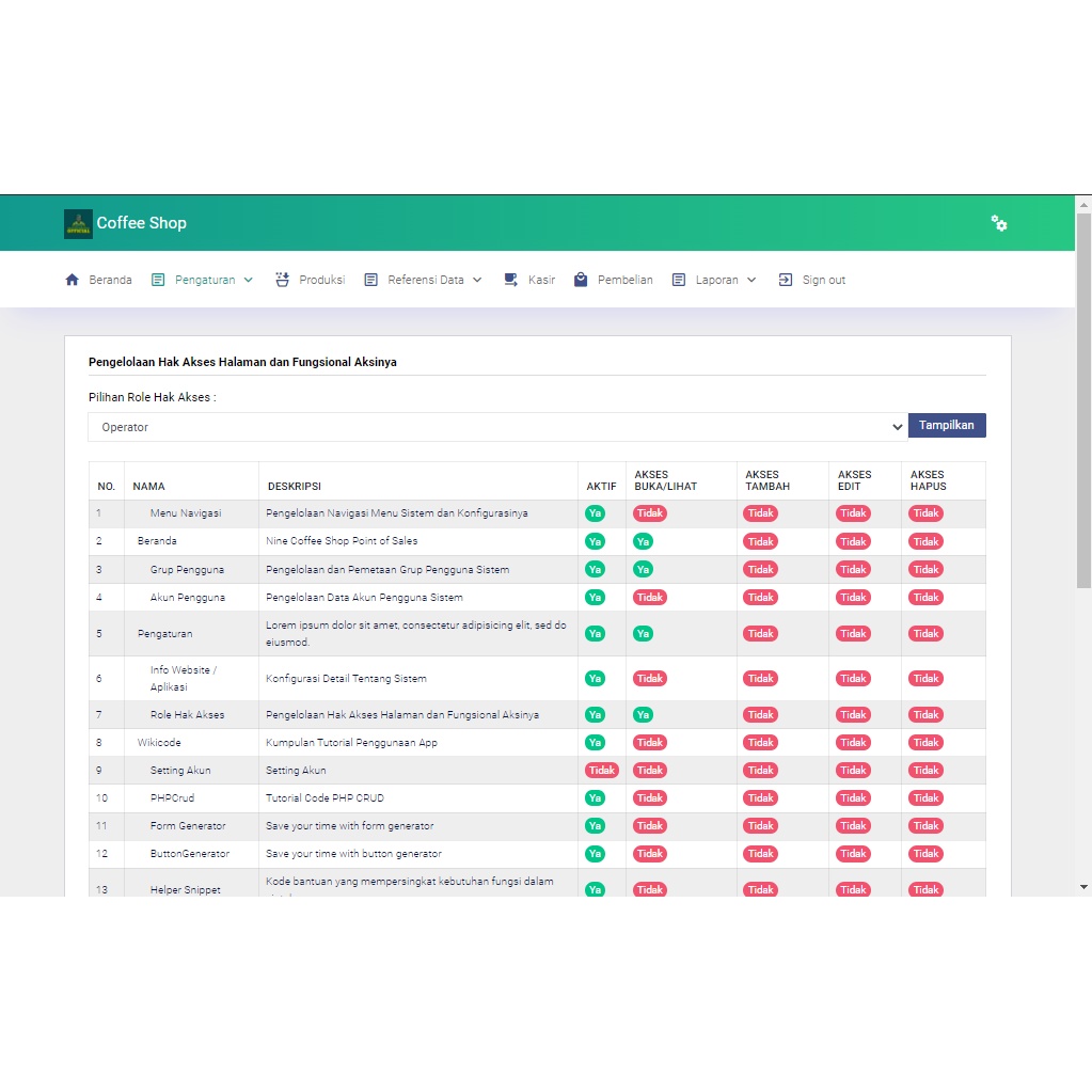 APLIKASI POS ( POINT OF SALES ) COFFEE SHOP BERBASIS WEBSITE PHP MYSQL CODEIGNITER