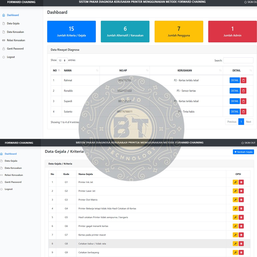 APLIKASI WEB SOURCE CODE SISTEM PAKAR DIAGNOSA KERUSAKAN PRINTER METODE FORWARD CHAINING PHP MYSQLI