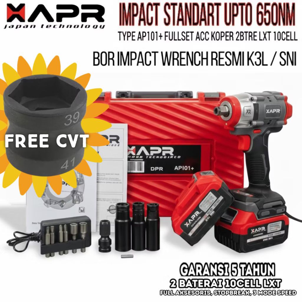 Impact APR AP101+ 650Nm 2baterai FREE KOPER PROMO APR RAJA IMPACT Mesin Impact Wrench 88V AP101+ APR JAPAN QUALITY 650NM 2BATREI FULL BONUS KOPER FULL BONUS MURAH
