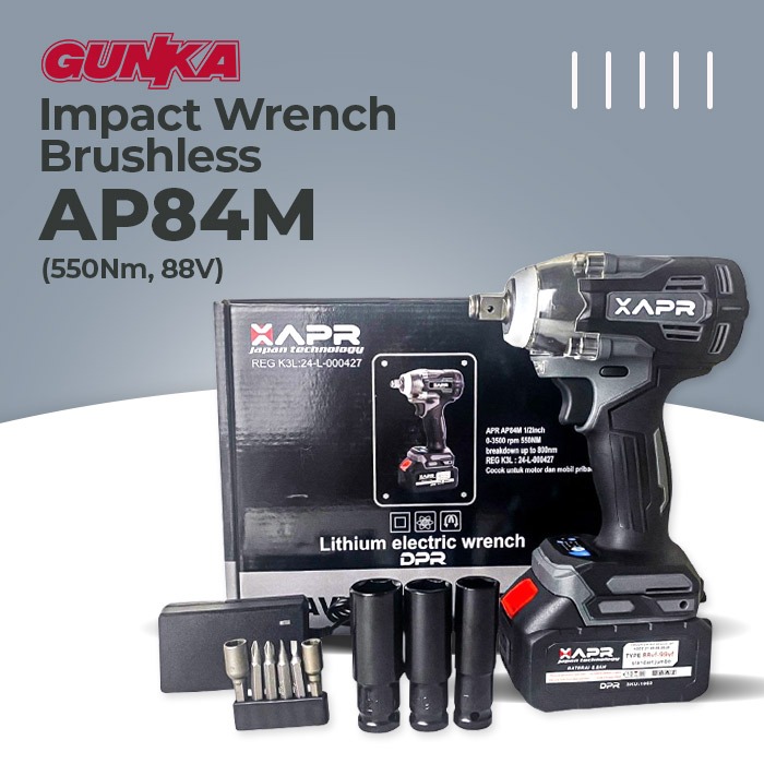 APR Impact Wrench Brushless (1/2", 550Nm, 88V) XAPR APR-AP84M Mesin Pembuka Baut Ban Mobil Motor Kunci Impact Driver Torsi Tinggi Cordless Paket Lengkap dengan Baterai