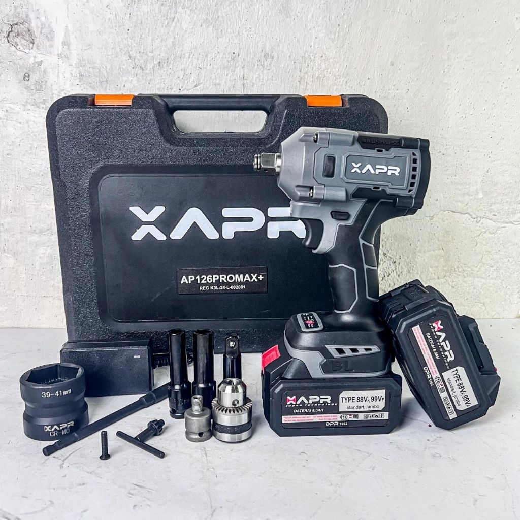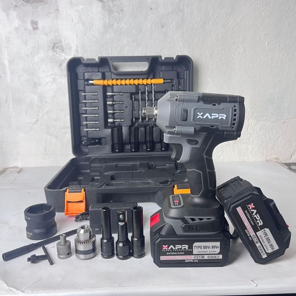 APR RAJA bor impact wrench ap126promax plus 1000nm body kecil tenaga jumbo fullset koper 2 baterai pembuka baut roda motor mobil