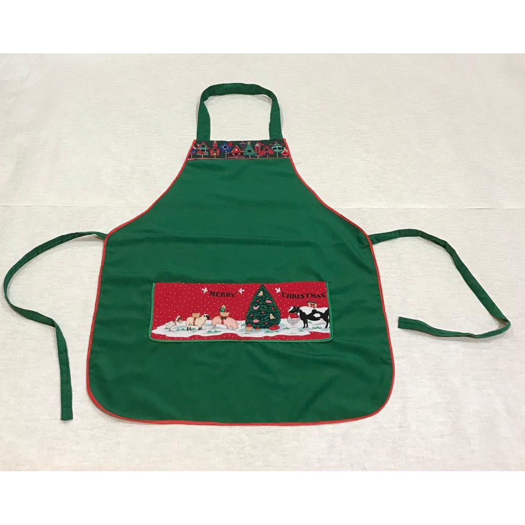 APRON CELEMEK DEWASA MOTIF NATAL CHRISTMAS HAND MADE UKURAN 58x73cm (PxT)