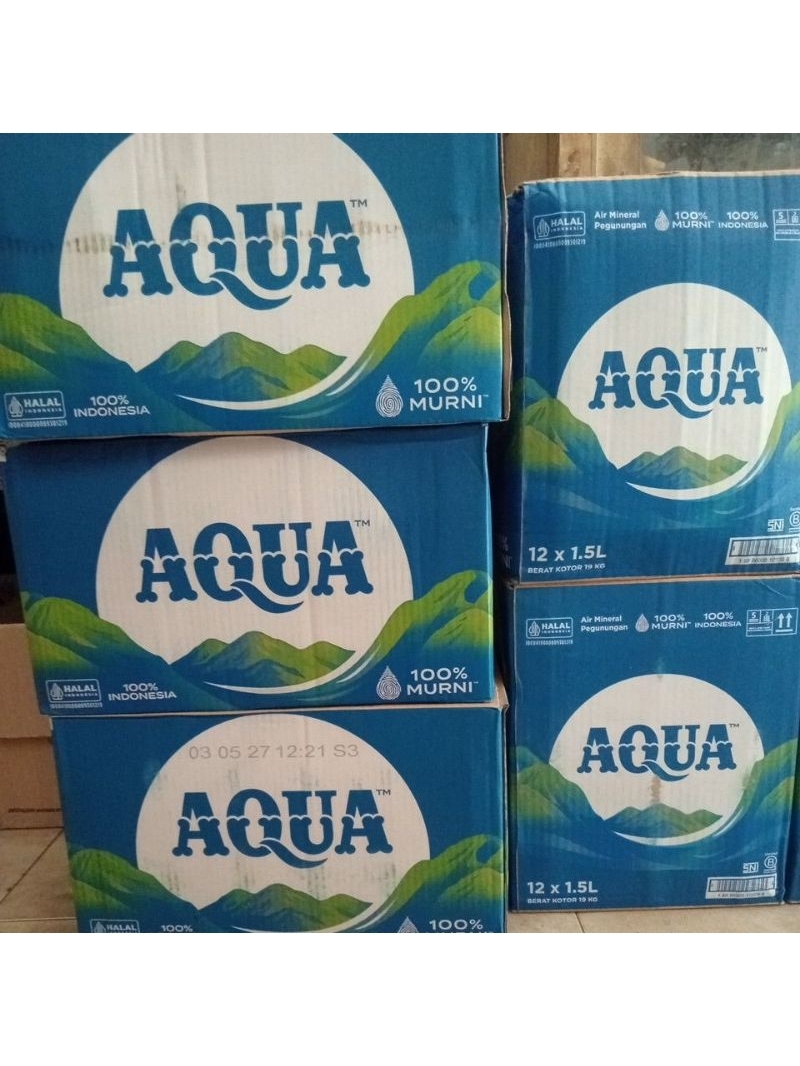 AQUA botol 1Dus ukuran 600 ml & 1.5 liter