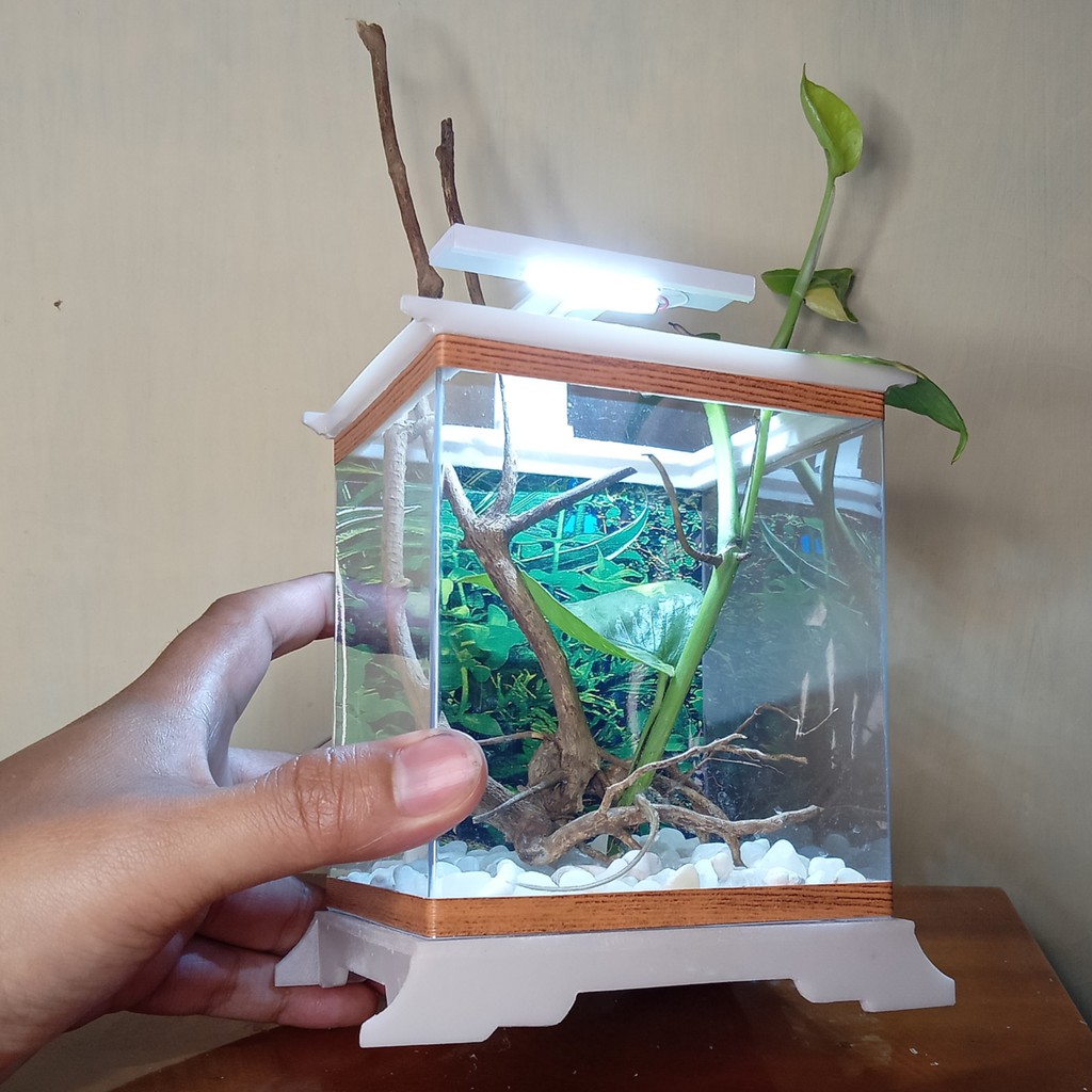 AQUARIUM MINI IKAN CUPANG IKAN HIAS KOTAK UNIK ARTISTIK AKSESORIS LAMPU HIAS BATU TANAMAN