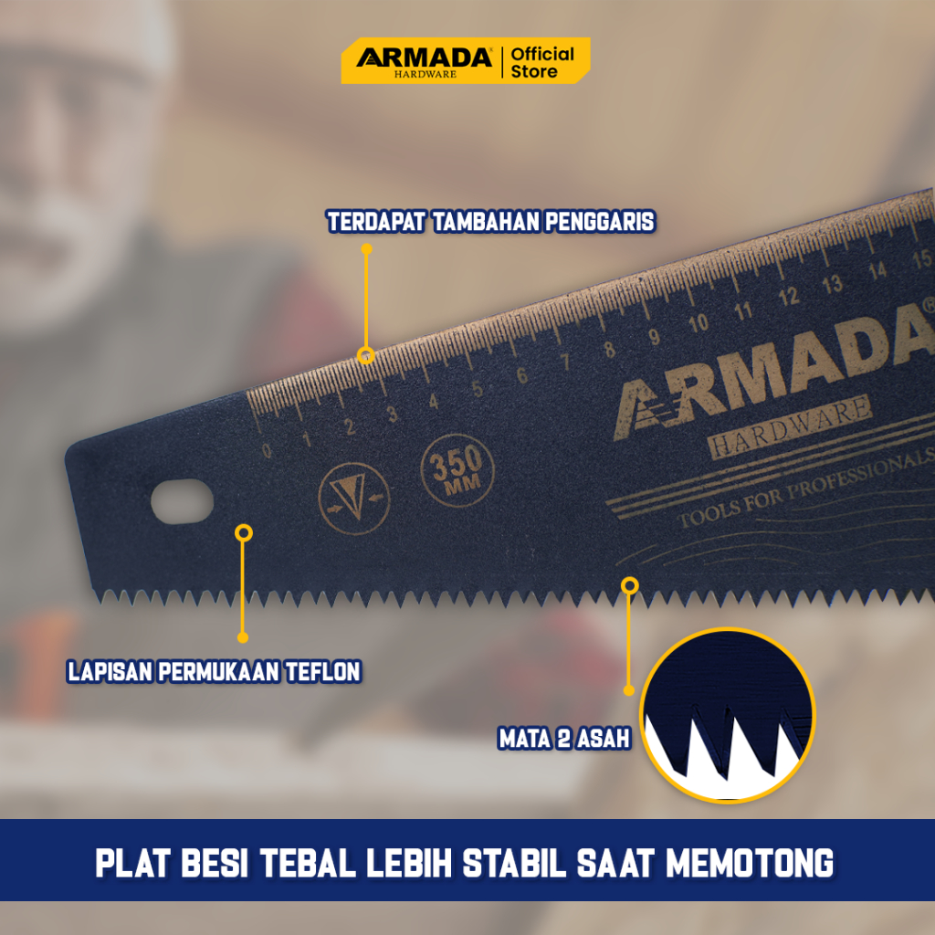 ARMADA Gergaji Kayu Teflon Gagang ABS + Karet Anti Slip Gergaji Tangan Manual Hand Saw Murah