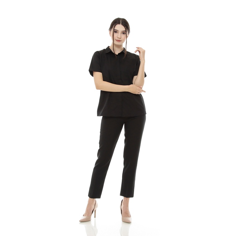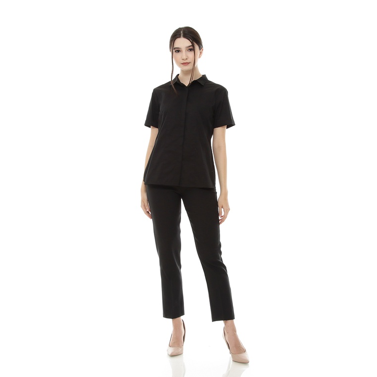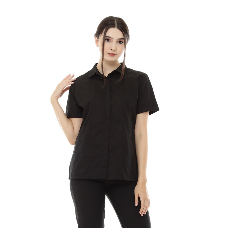 AROMORE Kemeja Lengan Pendek Wanita Margareth - [Black / S to XL]