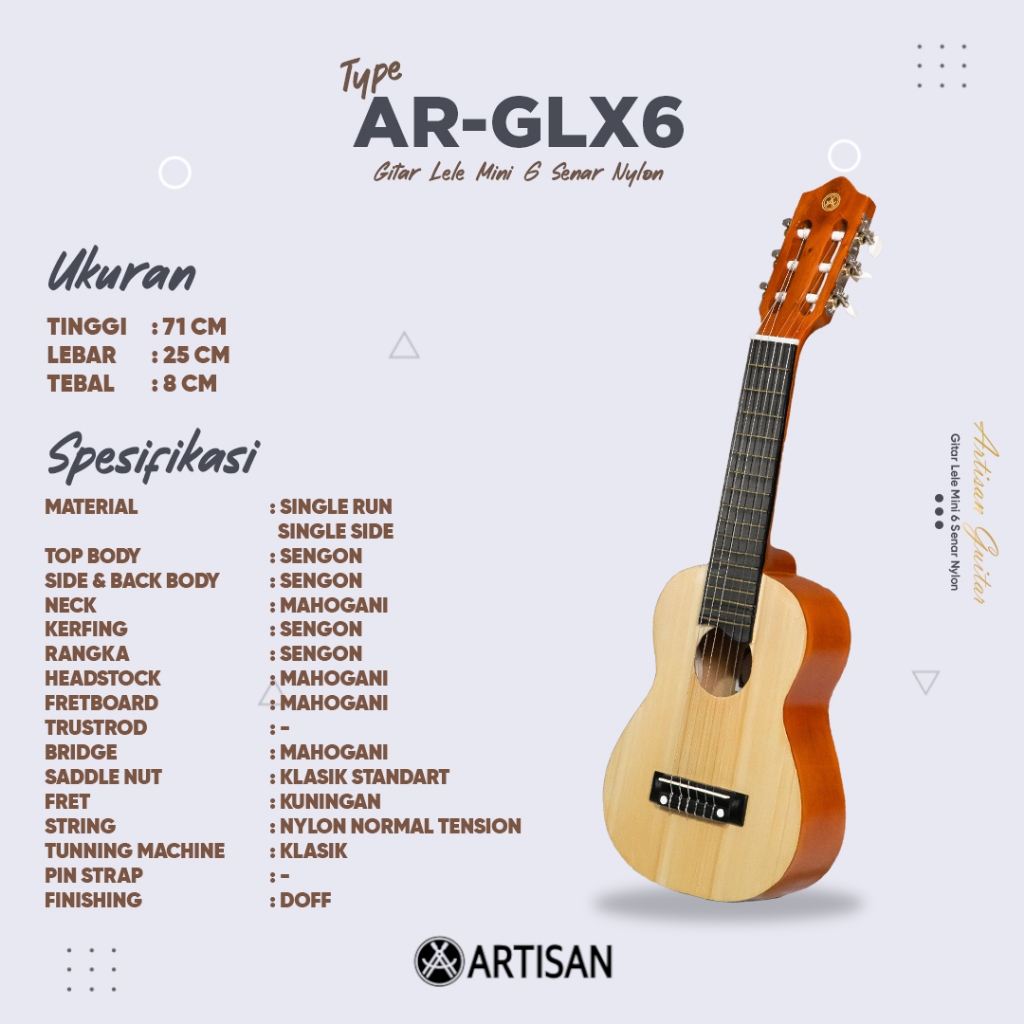 ARTISAN Gitar Lele Mini AR - GLX6 Senar 6 Nylon Guitar