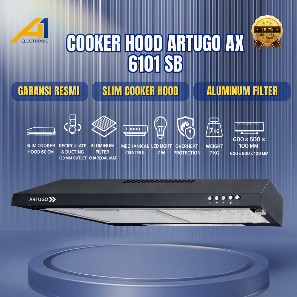 ARTUGO Cooker Hood AX 9101 SB | AX 6101 SB | AX 7101 SB | AX 9787 CB , Penyedot Asap Kompor Tudung Penghisap 60 - 90 Cm