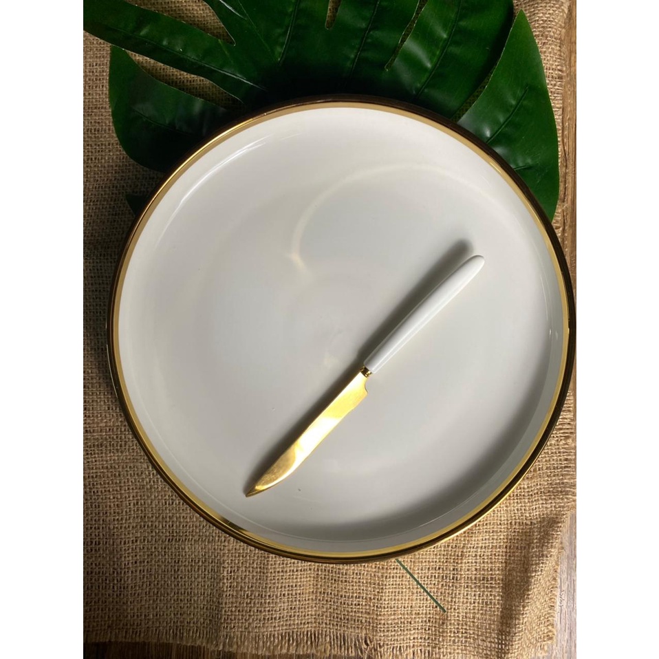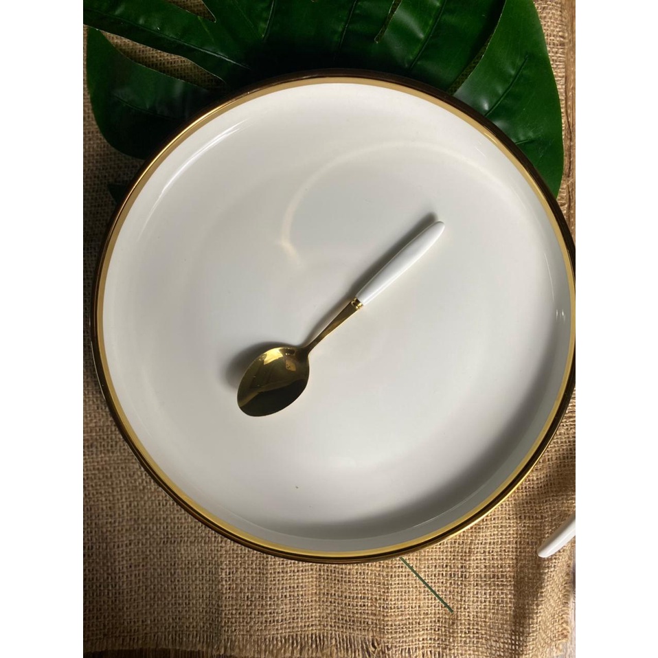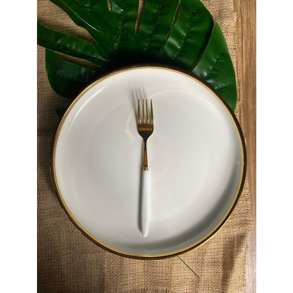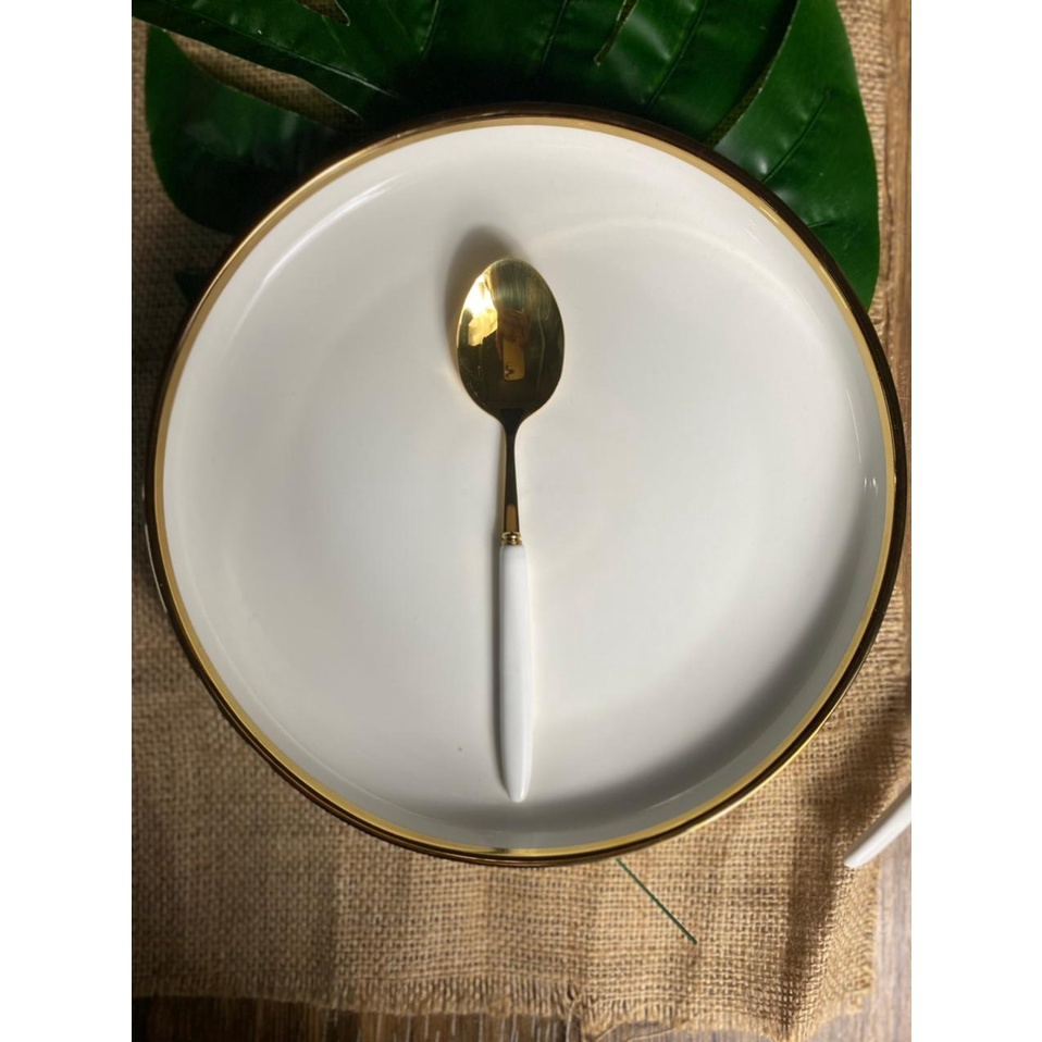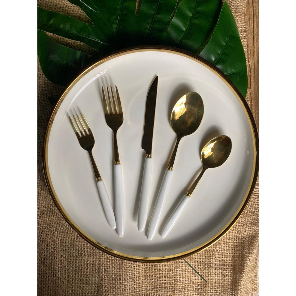 ASHOME Sendok Set Keramik Putih (Satuan / Set) / Sendok Makan Putih Gold / Sendok Makan Mewah / Sendok Makan / Sendok Garpu Mewah / Sumpit Korea