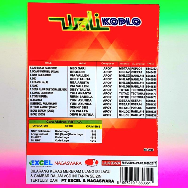 ASLI KASET LAGU WALI BAND-BISA KARAOKE-VOCAL ON OF AKTIF-KASET LAGU KARAOKE POP INDONESIA-KASET KARAOKE LAGU RELIGI-LAGU KARAOKE DANGDUT KOPLO-BISA COD