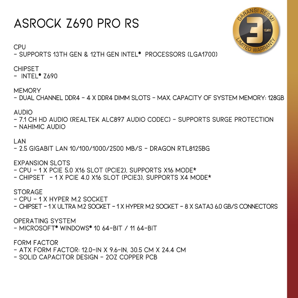 ASROCK Z690 Pro RS | Intel Z690 LGA 1700 DDR5 ATX