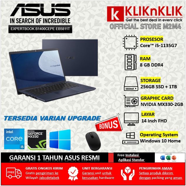 ASUS Expertbook B1400 Core i5 1135G7 8GB SSD 256GB + 1TB MX330-2GB FHD Star Black