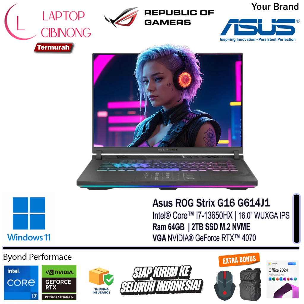 ASUS ROG STRIX G16 | G614J1 Intel Core i7 13650HX Nvidia RTX4070-8GB WUXGA 165Hz RGB Windows 11 Grey