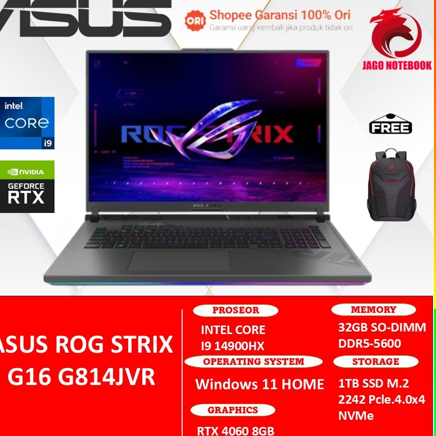 ASUS ROG STRIX G18 G814JVR I9 14900HX RTX4060 8GB/ 1TB 32GB WINDOWS 11 18QHD 240HZ
