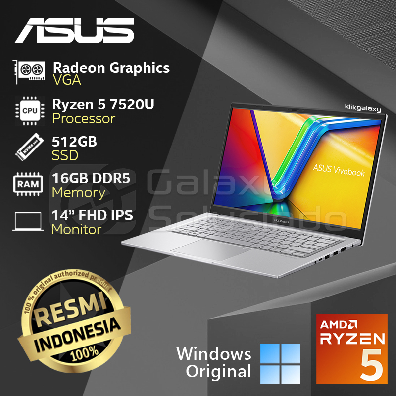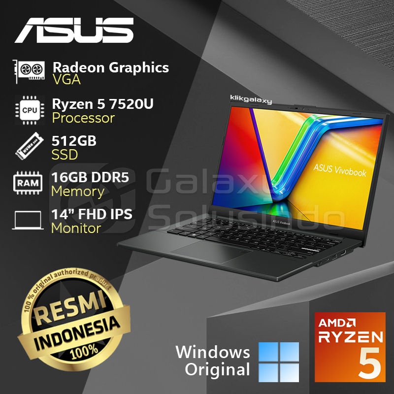 ASUS VIVOBOOK GO E1404FA- Ryzen 5 7520U 512GB SSD 16GB RAM - VIPS552M Black / VIPS554M Silver Notebook Laptop