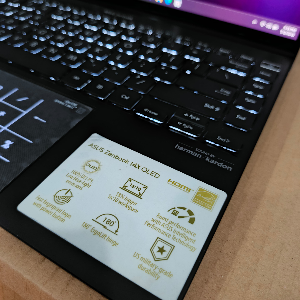 ASUS ZenBook 14X OLED - UX5401E, #Touchscreen, Intel Core i7-1165G7, Gen 10Th, Ram 16Gb GB / 512GB SSD, Numpad (Numerik), Backlight, Super Slim, Gaming, Like New, Lengkap, Navy Blue