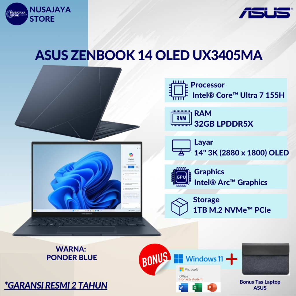 ASUS Zenbook 14 OLED UX3405MA Intel Ultra 7 155H 32G 1TB 14" 3K W11 OHS