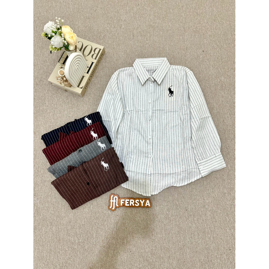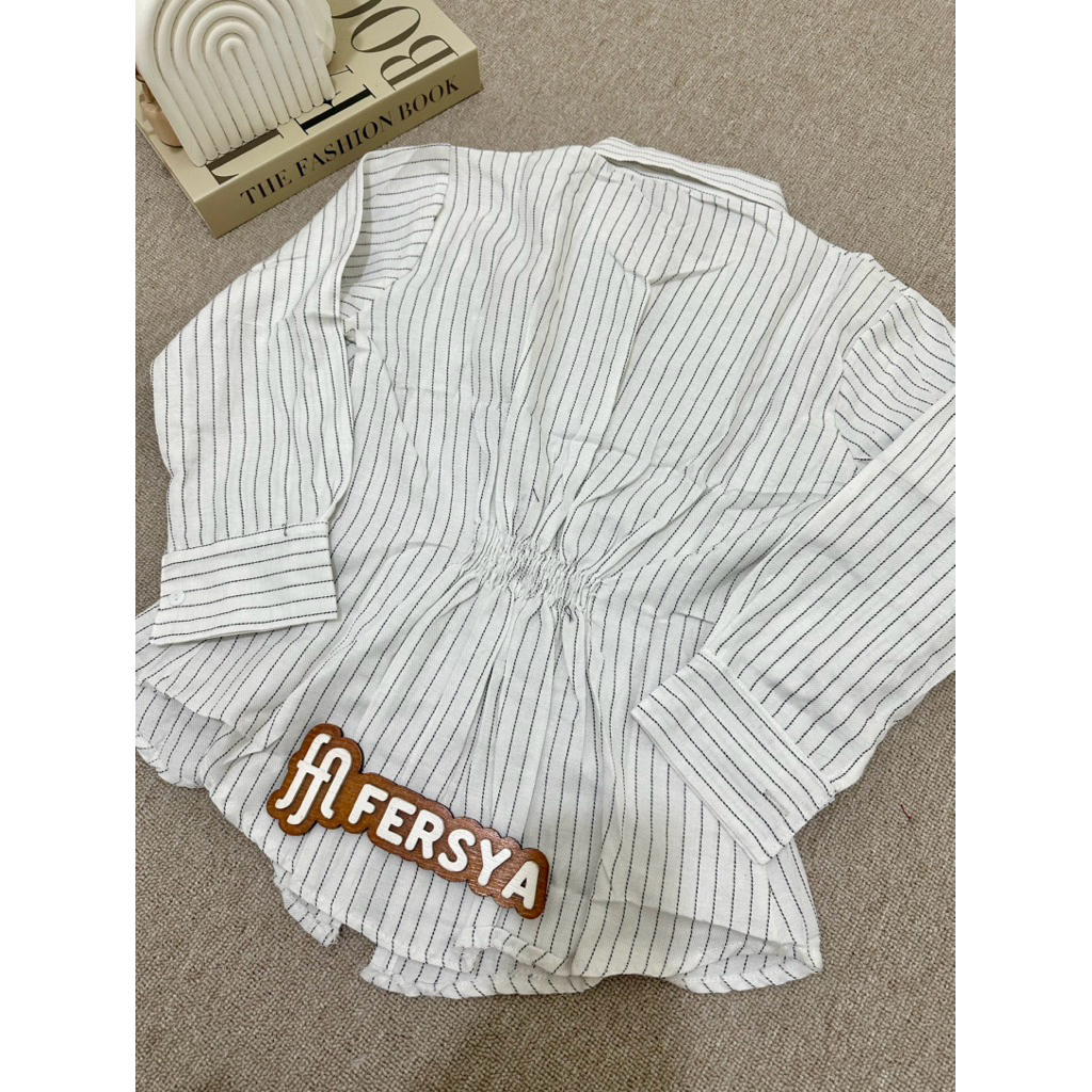ATASAN KEMEJA STRIPE BORDIR KARET BELAKANG SERBA 35K #AFR