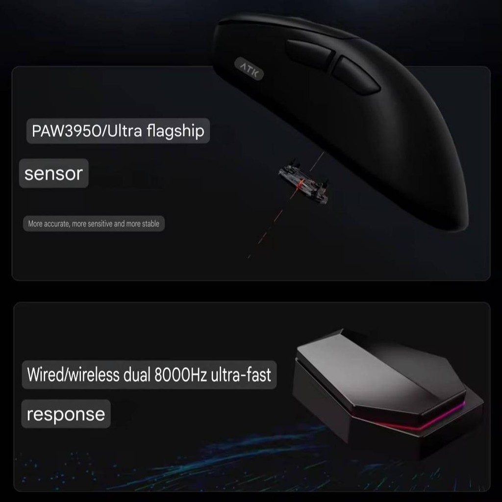 ATK Z1 Ultra 8K Wireless Ultra Light Weight Ergonomic PAW3950 ULTRA Gaming Mouse